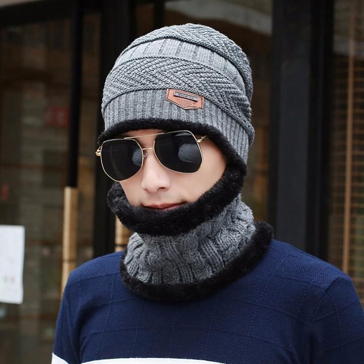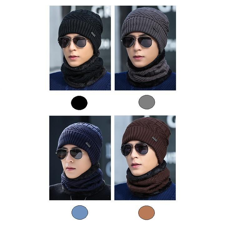 PVN55244 Mũ len cho nam kèm khăn choàng cổ mùa đông giữ ấm tốt