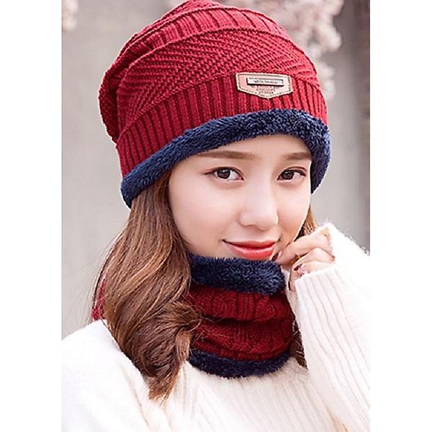 Mũ len kèm khăn ống quàng cổ cực ấm - phong cách Hàn Quốc