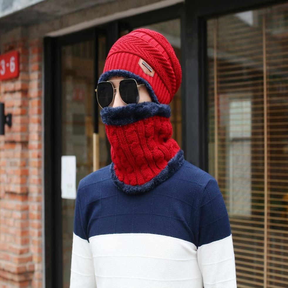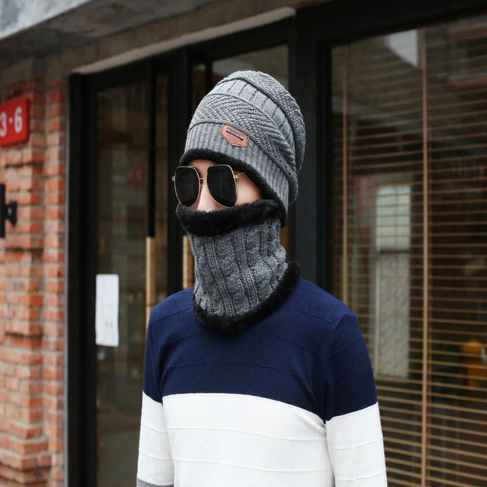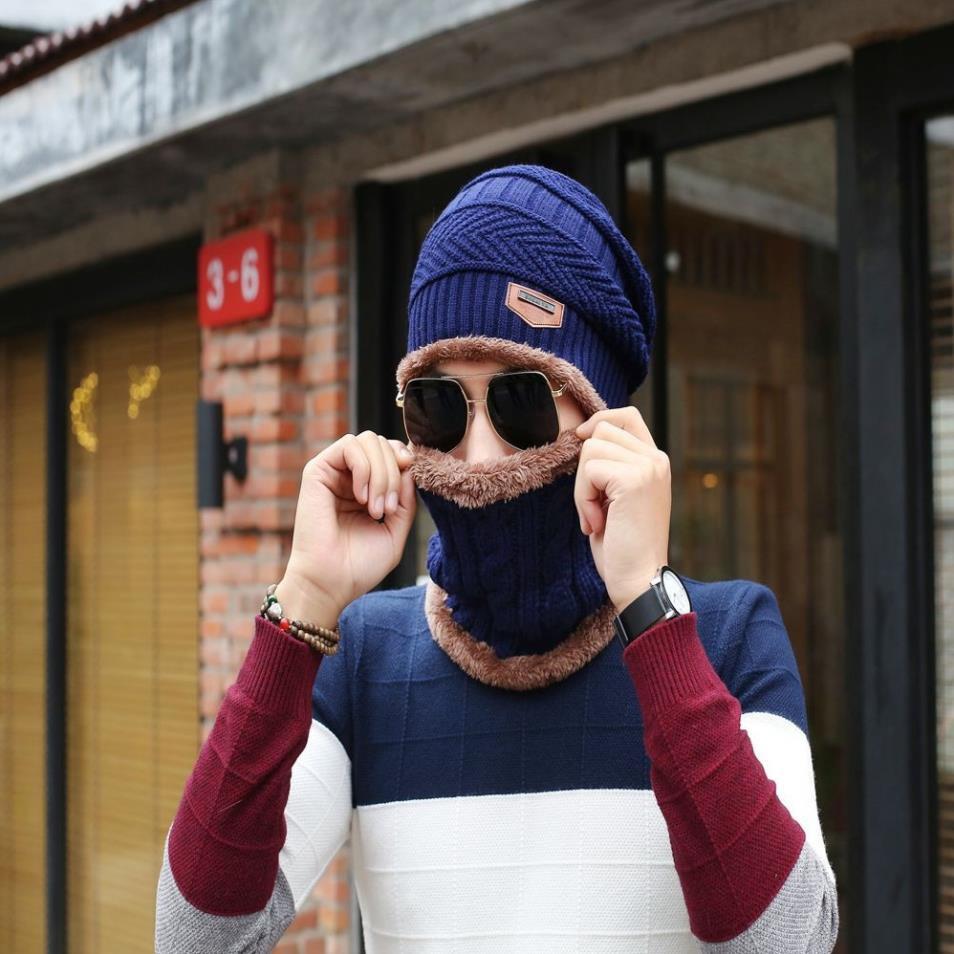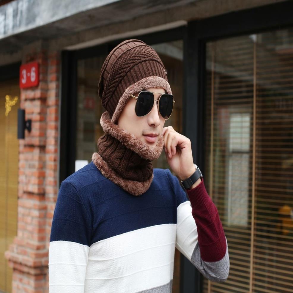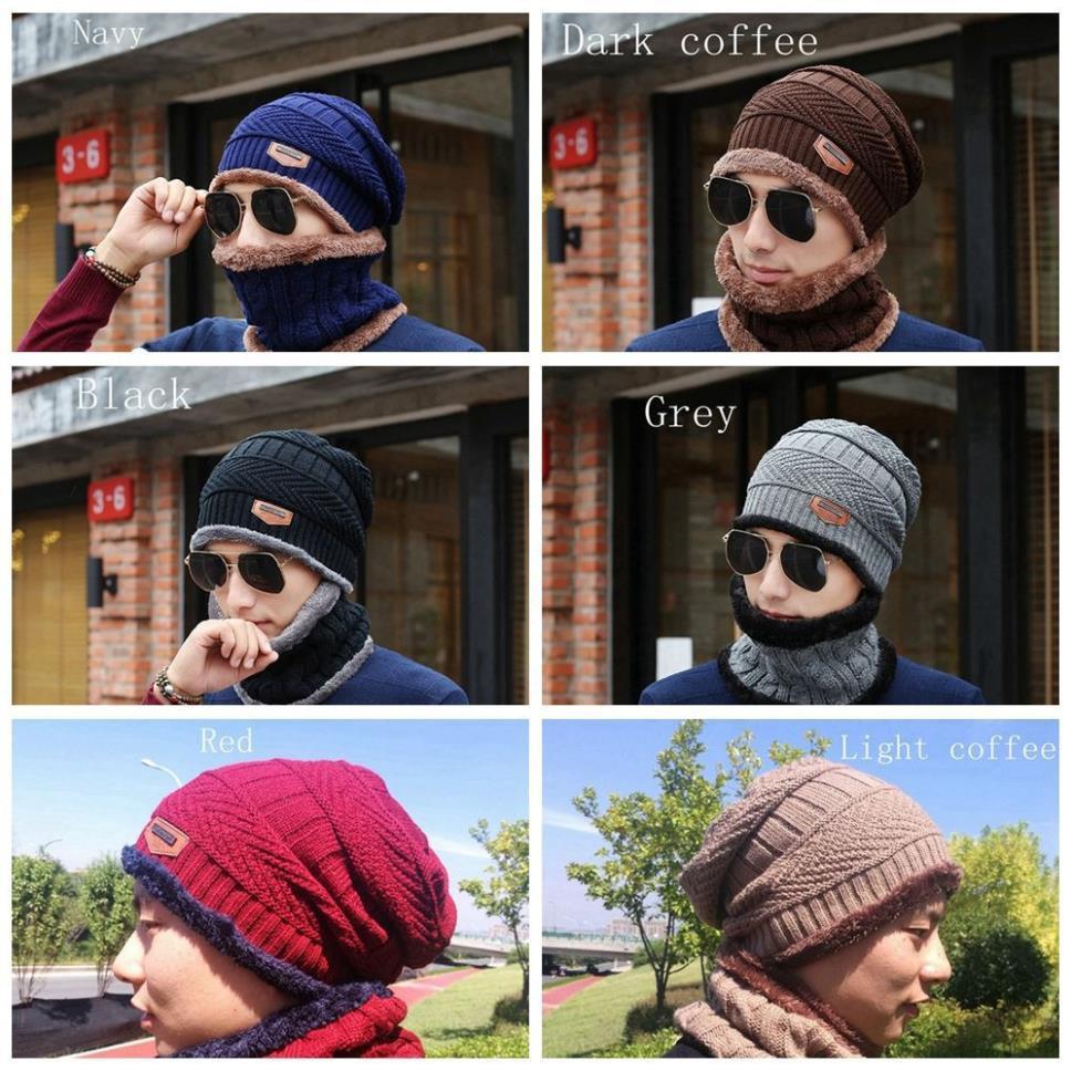 Mũ len nam nón len nam khăn choàng cổ thời trang Hàn Quốc Hàng nhập Chất len 2 lớp Bộ sản phẩm gồm nón và khăn y hình