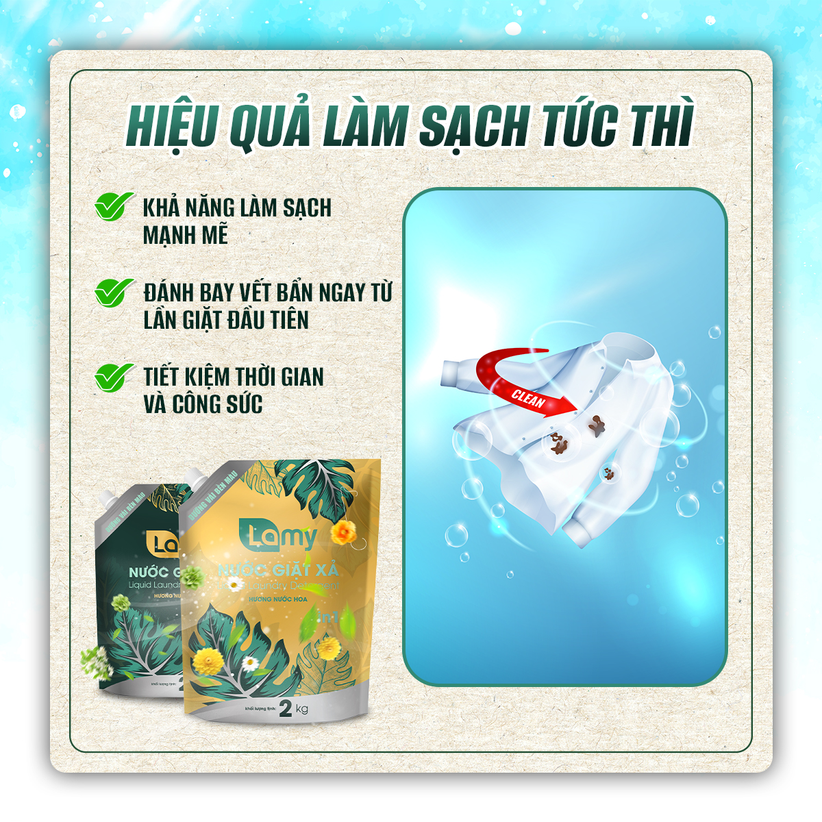 ✨[MUA 1 TẶNG 1] Nước Giặt Xả Lamy EcoWipes Túi 2KG Hương Nước Hoa Thơm Lâu Sạch Nhanh Làm Mềm Vải 3IN1 (2 TÚI)