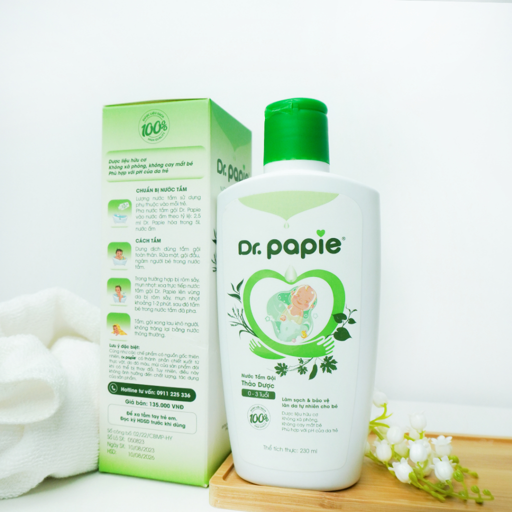 ✨Mua Chai 230ml Nước Tắm gội Thảo Dược DR PAPIE Tặng 1 Khăn Sữa Cho Bé
