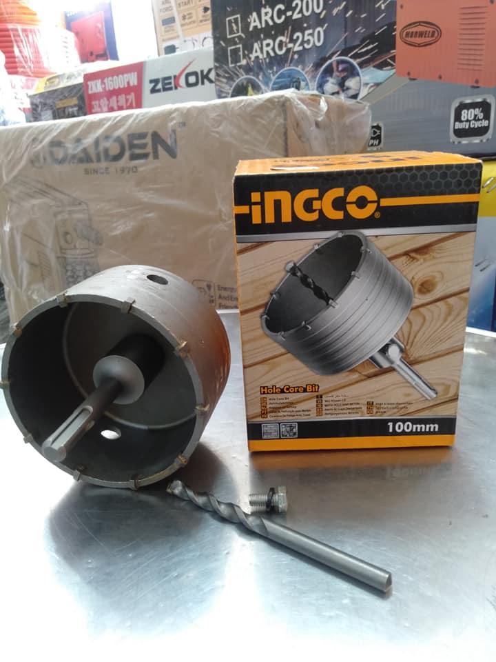 HCB1001 Đường kính lõi : 100mm, 10 lưỡi TCT trên mũi, kèm theo 1 khớp nối: 110m, 1 mũi khoan gài 8X110mm.