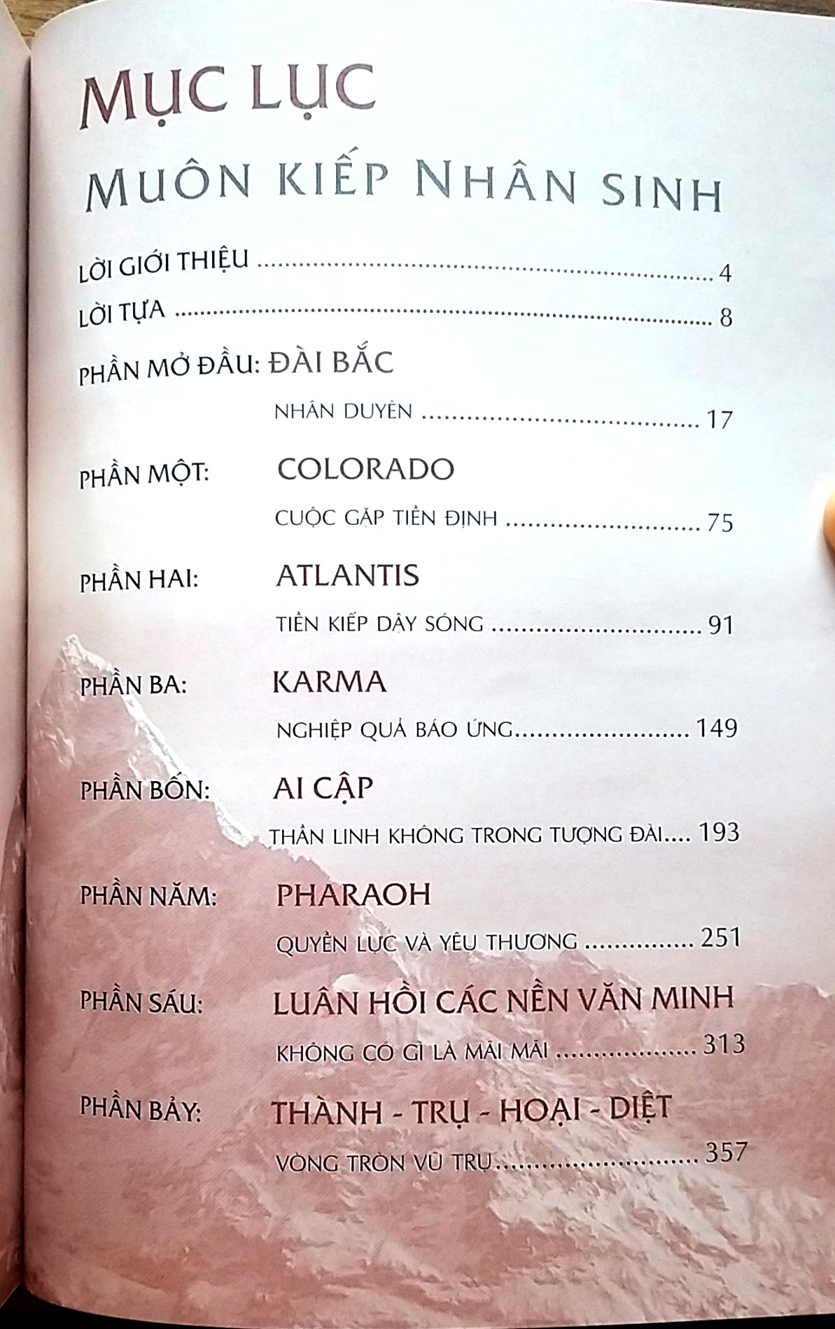 “Muôn kiếp nhân sinh” là một bức tranh lớn với vô vàn mảnh ghép cuộc đời, là một cuốn phim đồ sộ, sống động về những kiếp sống huyền bí, trải dài từ nền văn minh Atlantis hùng mạnh đến vương quốc Ai Cập cổ đại của các Pharaoh quyền uy, đến Hợp Chủng Quốc Hoa Kỳ ngày nay.