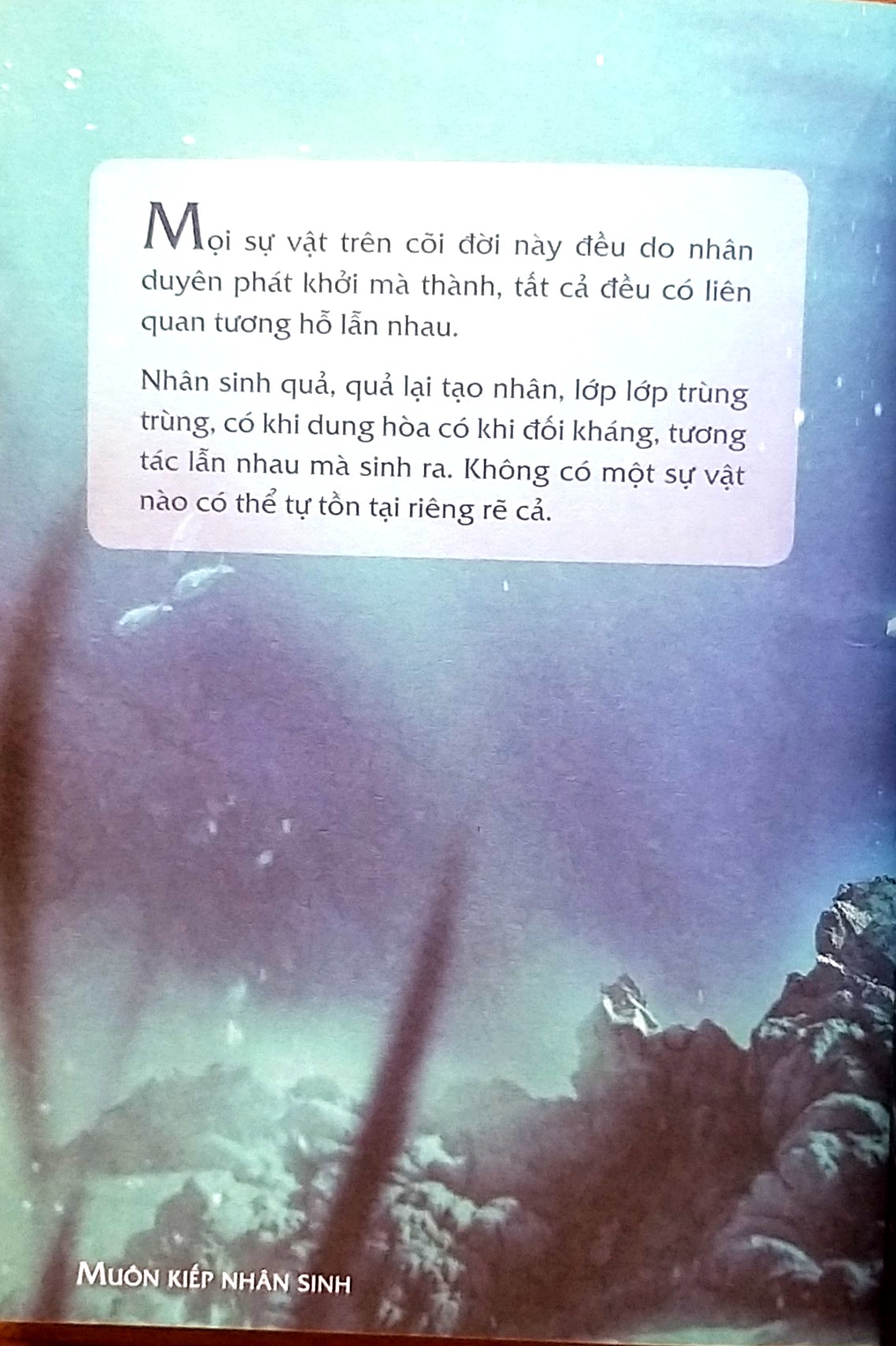 “Muôn kiếp nhân sinh” cung cấp cho bạn đọc kiến thức mới mẻ, vô tận của nhân loại lần đầu được hé mở, cùng những phân tích uyên bác, tiên đoán bất ngờ về hiện tại và tương lai thế giới của những bậc hiền triết thông thái. Đời người tưởng chừng rất dài nhưng lại trôi qua rất nhanh, sinh vượng suy tử, mong manh như sóng nước. Luật nhân quả cực kỳ chính xác, chi tiết, phức tạp được thu thập qua nhiều đời, nhiều kiếp, liên hệ tương hỗ đan xen chặt chữ lẫn nhau, không ai có thể tính được tích đức này có thể trừ được nghiệp kia không, không ai có thể biết được khi nào nhân sẽ trổ quả. Nhưng, một khi đã gây ra nhân thì chắc chắn sẽ gặt quả - luật Nhân quả của vũ trụ trước giờ không bao giờ sai.