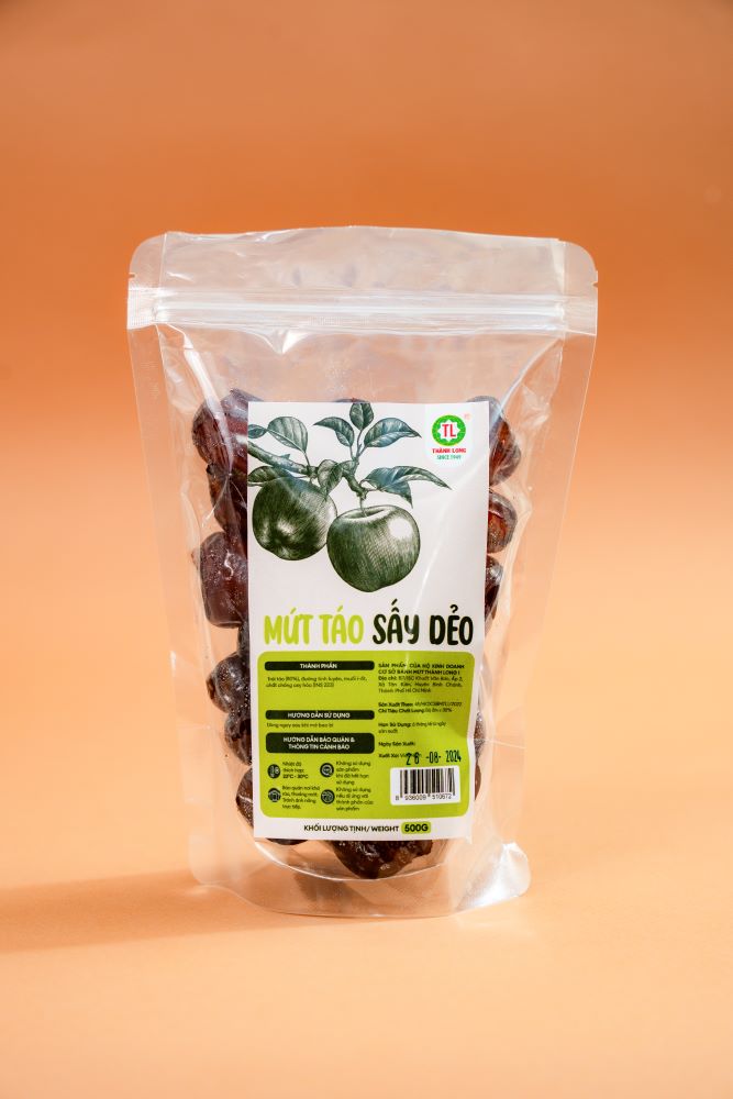 SẢN PHẨM CỦA HỘ KINH DOANH CƠ SỞ BÁNH MỨT THÀNH LONG 1MỨT TÁO SẤY DẺOTHÀNH PHẦN: Trái táo (80%), đường tinh luyện, muối i-ốt, chất chống oxy hóa (E223).SẢN XUẤT THEO: 48/HKDCSBMTL1/2021T...