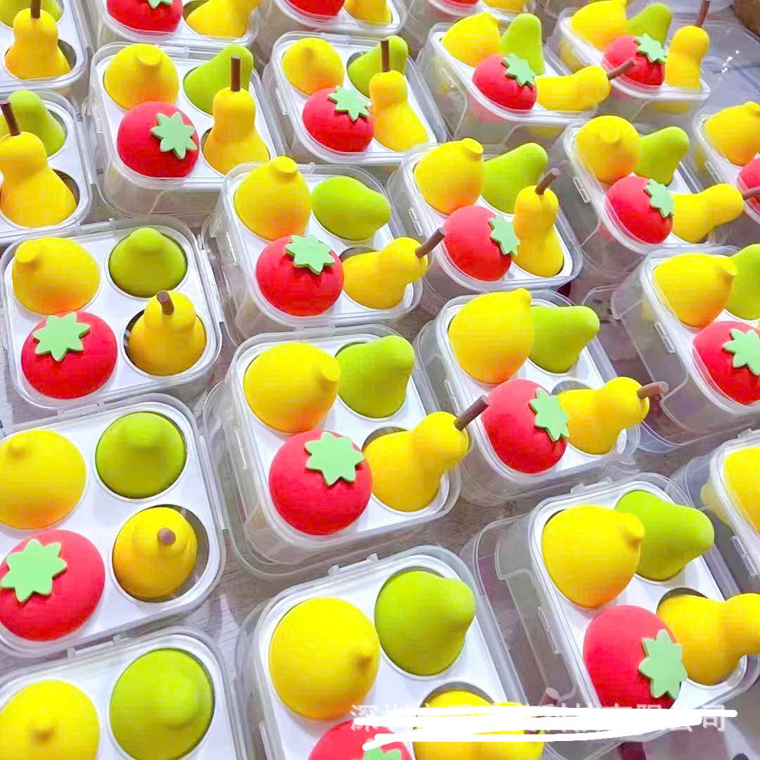 - Sét hộp 4 món tán phấn siêu mềm mại hình trái cây ,giọt nước , có độ đàn hồi cao , dẻo ,không bị biến dạng ,nhiều màu sắc cute xinh xắn đáng yêu