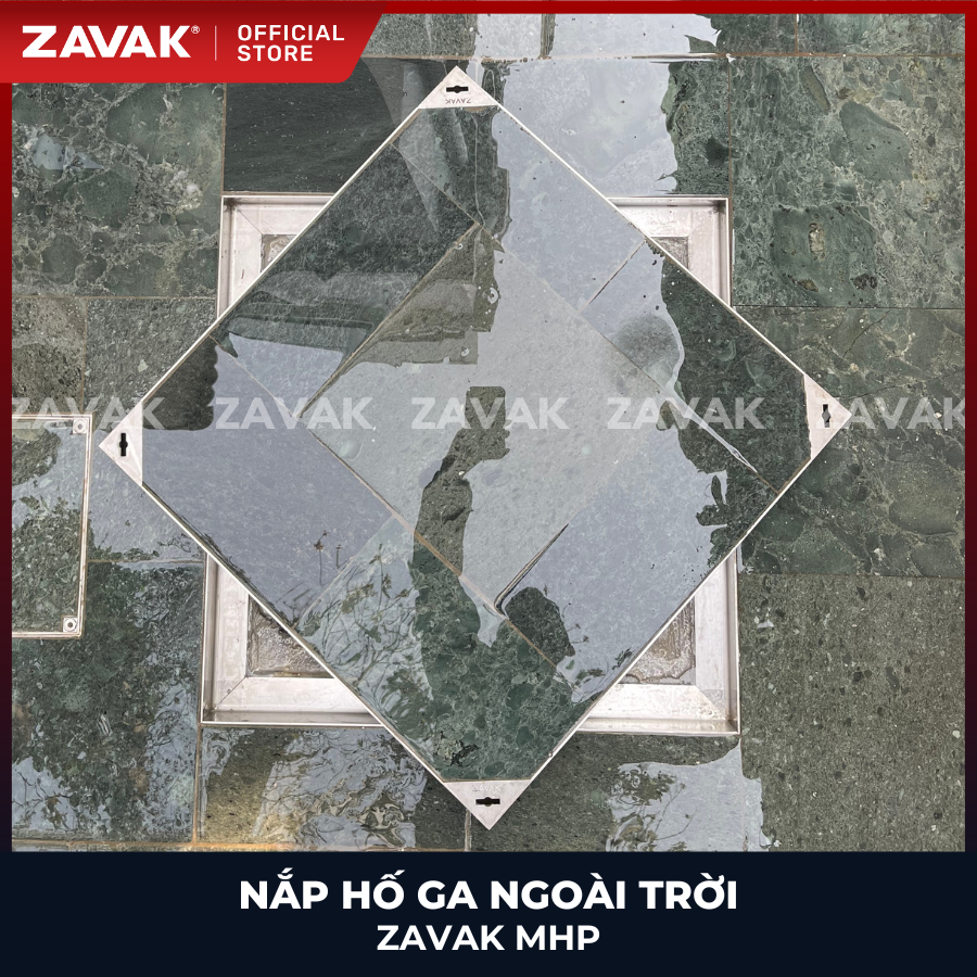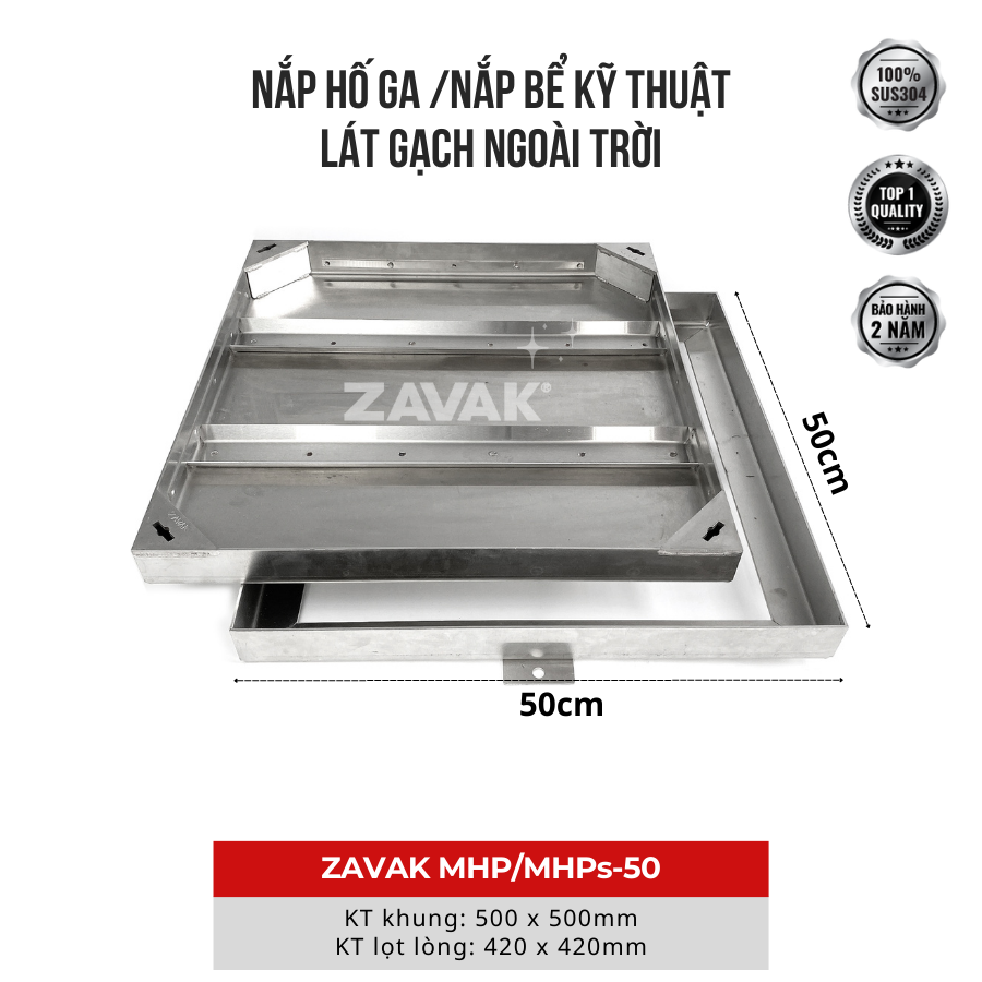 ✨Nắp hố ga ngoài trời inox ZAVAK MHP-AA50 / KT 50x50cm, lát gạch tối đa 2cm/ tải 960kg
