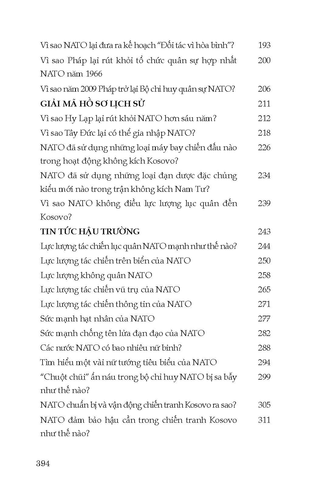 Mỗi cuốn sách được chia làm các chủ đề lần lượt là: Tham quan trọng điểm, Giải đáp thắc mắc, Giải mã hồ sơ lịch sử, Tin tức hậu trường, Bí mật quân sự, Giải đáp kỹ thuật quân sự