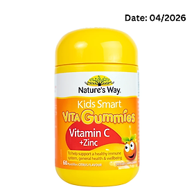 Mua tại TiktokNature's Way Kids Smart VITA GUMMIES( VITAMIN C+ Zn) - Bổ sung kẽm và vitamin C cho trẻ (60 viên/lọ)
