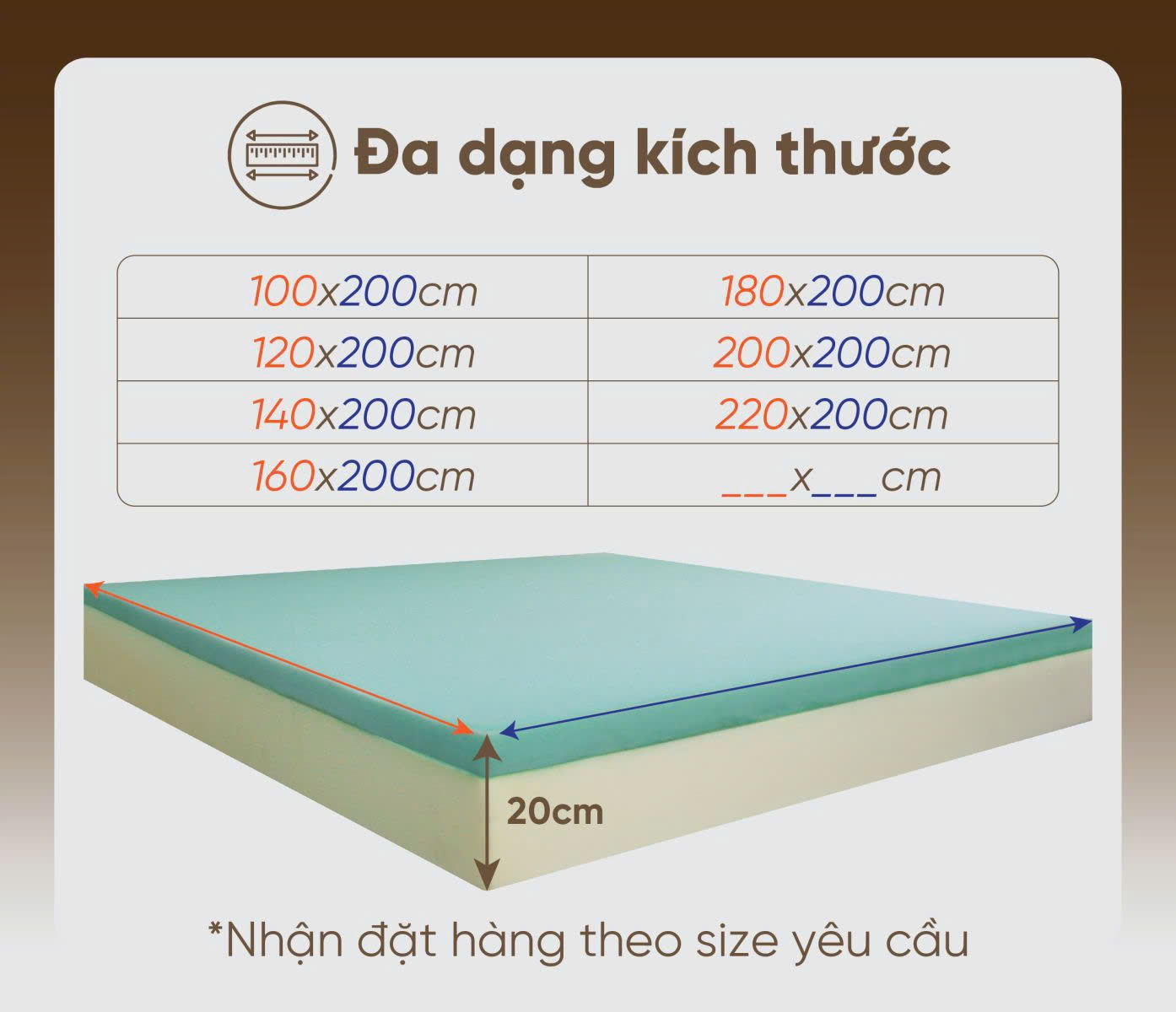 - Tính năng: nâng đỡ tối ưu các vùng khác nhau trên cơ thể, áo nệm được tích hợp chức năng chống nước, thoáng khí vượt trội - Độ dày nệm: 22 cm -