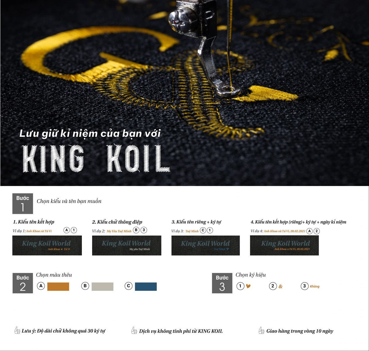 Đặc quyền cá nhân hoá: MIỄN PHÍ thêu tên/thông điệp lên chiếc nệm Hướng tới việc cá nhân hoá sản phẩm cho từng khách hàng khi mua nệm KingKoil tại hệ thống Thế Giới Nệm, chúng tôi dành tặng đặc quyền “thêu tên hoặc thông điệp lên tấm nệm King Koil World/ World Top/ World Top Cool” để khách hàng lưu trữ kỉ niệm hoặc thông điệp muốn gửi tặng cho người thương. Đây là dịch vụ hoàn toàn MIỄN PHÍ dành riêng cho khách hàng của Thế Giới Nệm. Cấu tạo của nệm lò xo King Koil