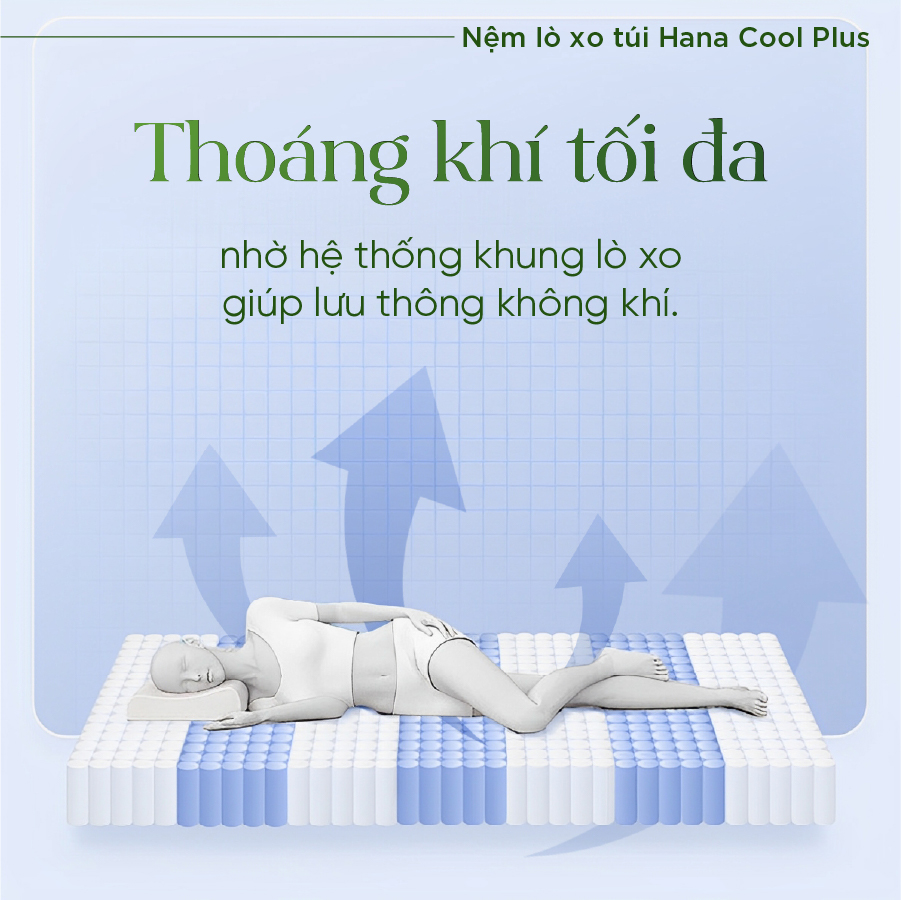 Êm Ái Mát Lạnh cùnng Nệm lò xo túi Tatana Hana Cool Plus