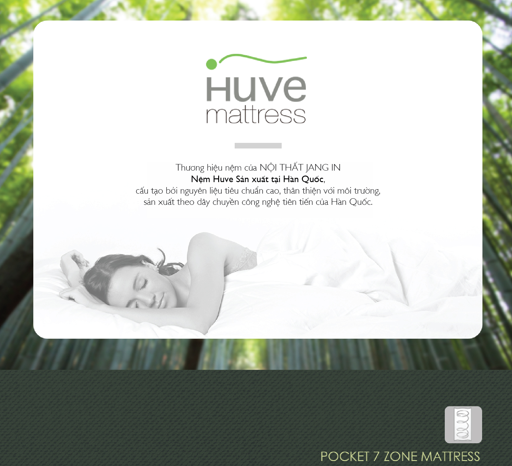 Nệm HUVE - SWING 1.8m nhập khẩu Hàn Quốc THÔNG TIN SẢN PHẨM - Thương hiệu: JANG IN - Xuất xứ: Hàn Quốc - Bộ sưu tập: SWING - Kích cỡ: 1800 x 2000 x