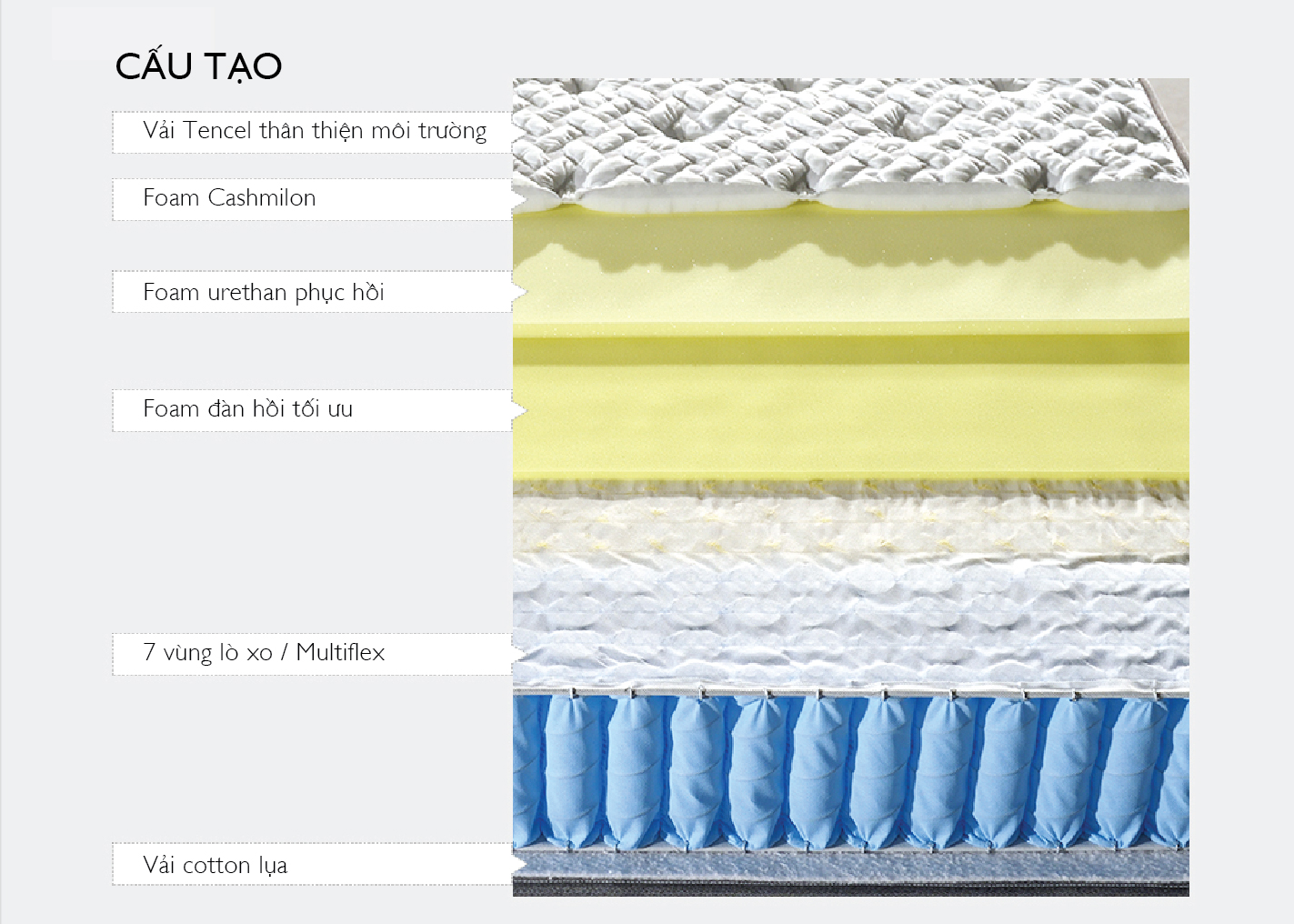 - Lò xo độc lập 7 vùng Multiflex