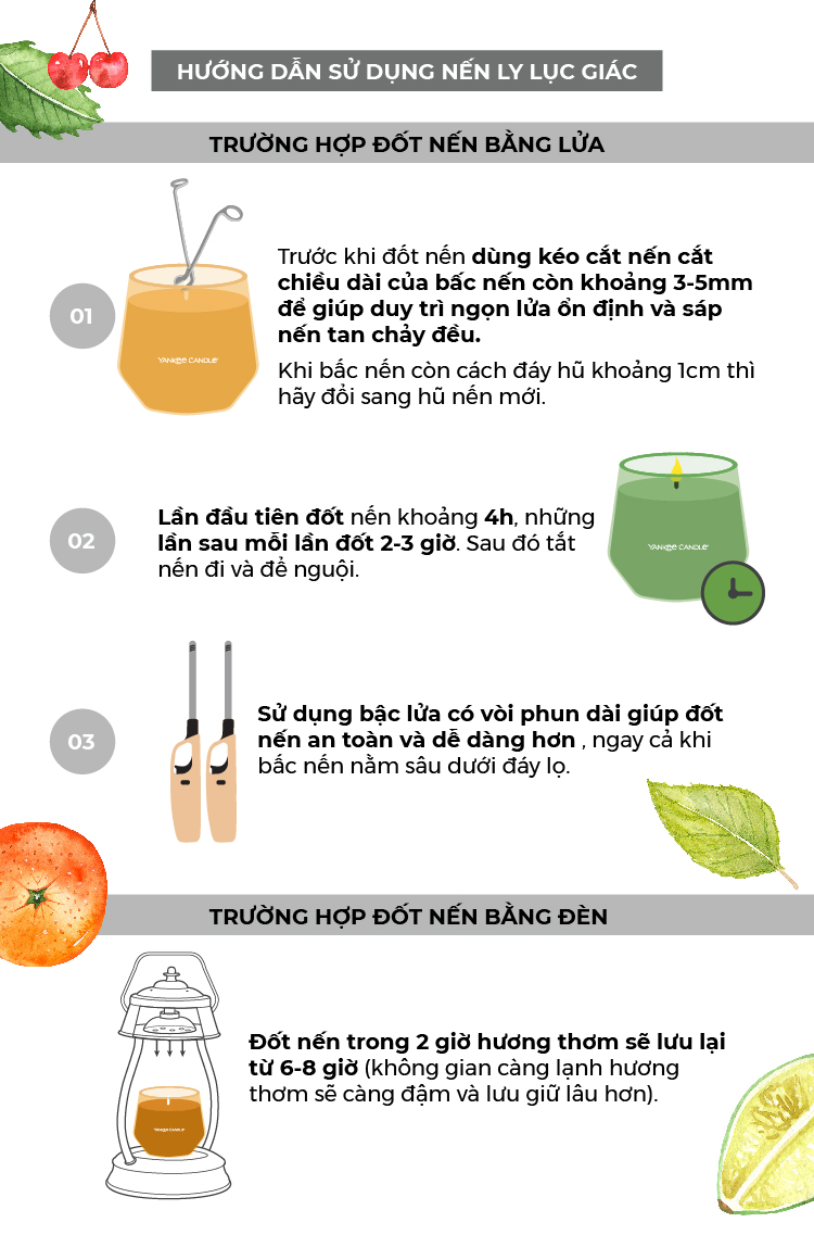 THÔNG TIN SẢN PHẨM: 1/ ƯU ĐIỂM VƯỢT TRỘI: Làm từ sáp đậu nành an toàn, thân thiện với môi trường, không gây độc hại Nến toả hương thơm ngay cả khi chưa đốt. Trọng lượng nến: 200gr Kích Thước: 7.3*9cm Thời gian đốt liên tục: 50h (tùy vào thời gian sử dụng nhiều hay ít) 2/ CÔNG DỤNG: ️ Tạo hương thơm, khử mùi hôi, ẩm mốc trong không gian ️ Giải tỏa stress, căng thẳng, mệt mỏi, tăng khả năng tập trung ️ Tăng cường kháng khuẩn trong không khí 3/ CÁCH SỬ DỤNG: Kiểm tra độ dài bấc (cắt ngắn nếu bấc dài hơn 0,5cm) Thắp nến lần đầu tiên đủ thời gian để bề mặt nến tan chảy hoàn toàn (khoảng 30’ – 1h) Không thắp nến liên tục quá quá 3h. Sau khi đốt không nên dùng miệng thổi tắt nến (dễ sinh ra khói đen) nên dùng chụp nến chuyên dụng chụp lên khoảng 10-15s để nến tắt hoặc dùng 1 chiếc đĩa sứ nhỏ chụp lên trên. Sau khoảng 1h-2h sử dụng, bạn tắt nến đi và yên tâm là nến vẫn tỏa mùi hương nhẹ nhàng sau khi tắt đấy. Đốt nến trong phòng kín và ít người ra vào để hương thơm được lưu giữ lâu hơn) Đốt nến trước khi vào phòng 15’ #nenthom #nenhoakho #nentrangtri