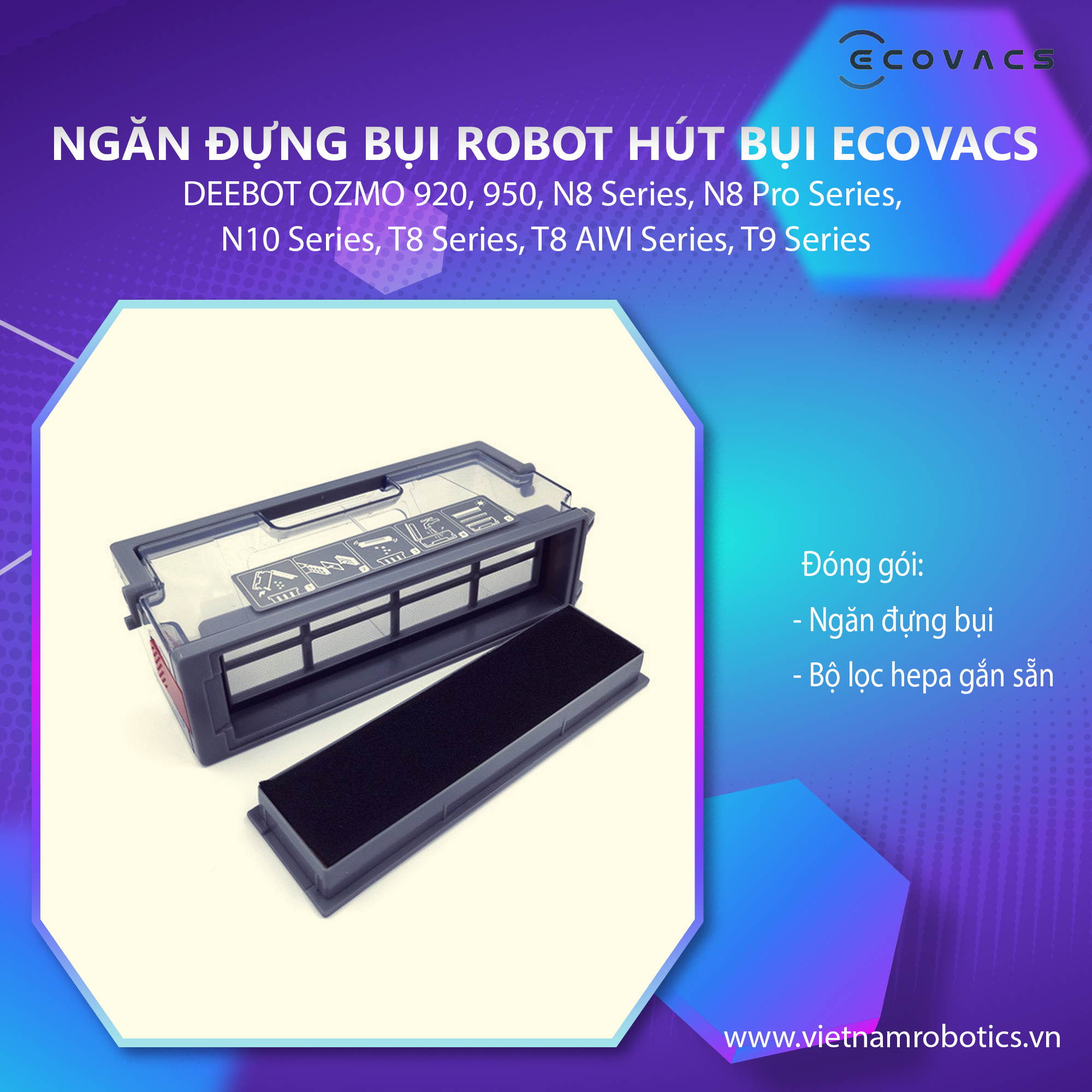 ✨Ngăn đựng rác Ecovacs Deebot N8/ N8 Pro/ N10/ T8/ T8 AIVI/ T9/ 920/ 950 - Hàng Chính Hãng