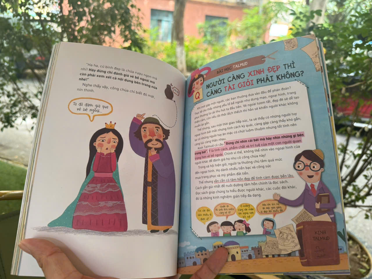 Cuốn sách "Nghệ Thuật Dạy Con Từ Kinh Talmud" là một tuyển tập gồm 20 câu chuyện sâu sắc được tuyển chọn từ bộ kinh cổ Talmud – nền tảng tri thức và đạo đức của người Do Thái. Được chấp bút bởi hai tác giả Jung-Wan Kim và Yu-Jin Seo, minh họa sinh động bởi Joung-Yeon Yu và chuyển ngữ sang tiếng Việt bởi Soo Ber, cuốn sách mang lại những bài học quý báu không chỉ dành cho trẻ em mà còn cho các bậc cha mẹ đang tìm kiếm một phương pháp giáo dục hiệu quả, sâu sắc và giàu tính nhân văn.
