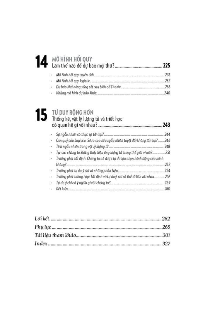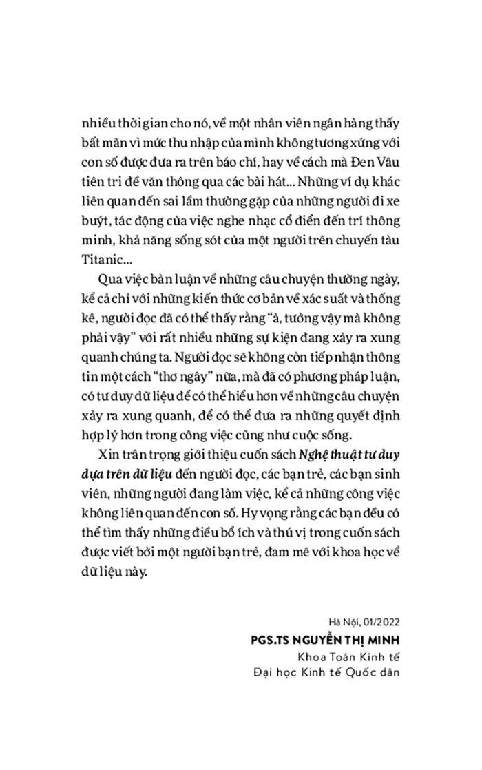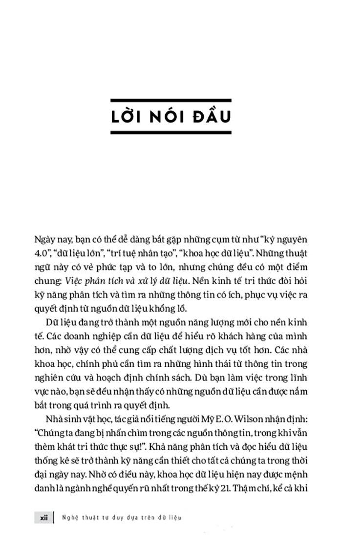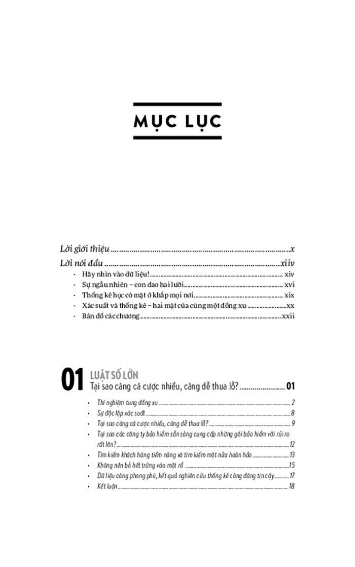 Trong cuốn sách này, bạn đọc sẽ tiếp cận những điều rất thú vị về thống kê học và phân tích dữ liệu mà không được dạy trong một lớp học thông thường. Bạn cũng sẽ tìm hiểu về một số sai lầm thường gặp khi nhìn vào các con số trong nghiên cứu hoặc đưa ra bởi truyền thông. Bạn sẽ thấy rằng những con số thống kê có mặt ở mọi lúc mọi nơi trong cuộc sống của chúng ta và chúng có thể cho bạn những cách nhìn mới về thế giới xung quanh.