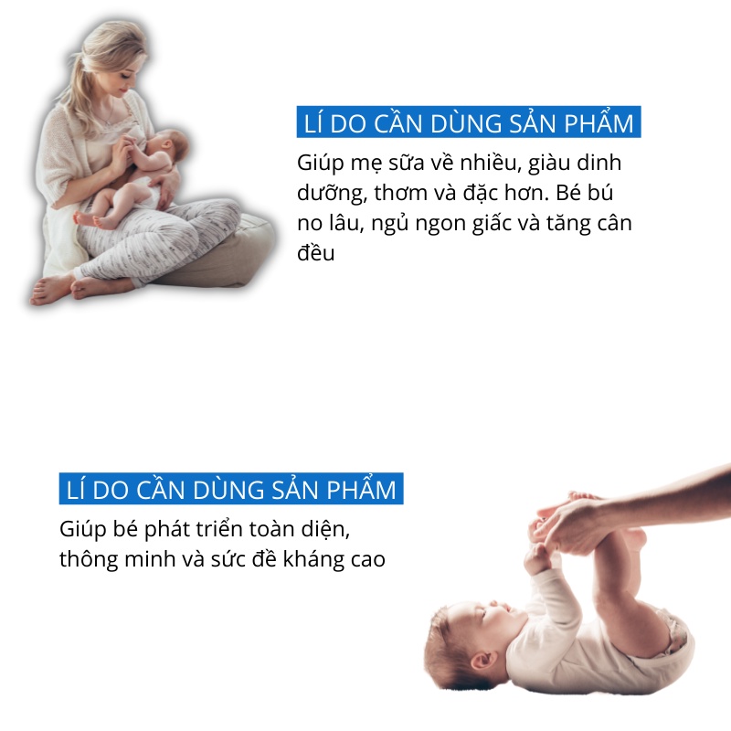 ❉ Giúp mẹ sữa về nhiều, giàu dinh dưỡng, thơm và đặc hơn. Bé bú no lâu, ngủ ngon giấc và tăng cân đều