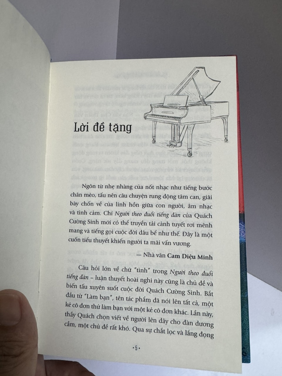 Tìm đàn là tìm người, đàn ẩn dụ cho người, tiếng đàn ẩn dụ cho tiếng lòng. Tìm tiếng đàn tức là tìm tấm chân tình, tìm giai điệu chân thực nhất của trái tim. Tính đến thời điểm hiện tại, “Người theo đuổi tiếng đàn” là tác phẩm hay nhất của Quách Cường Sinh, cũng là một trong những tiểu thuyết xuất sắc hiếm có của văn học Đài Loan.