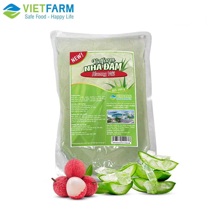 Thạch nha đam Vietfarm được sản xuất bởi Công ty CP Thực phẩm Cánh Đồng Việt, Cty sản xuất nha đam lớn nhất Việt Nam hiện nay. Quy trình sản xuất khép kín, đảm bảo