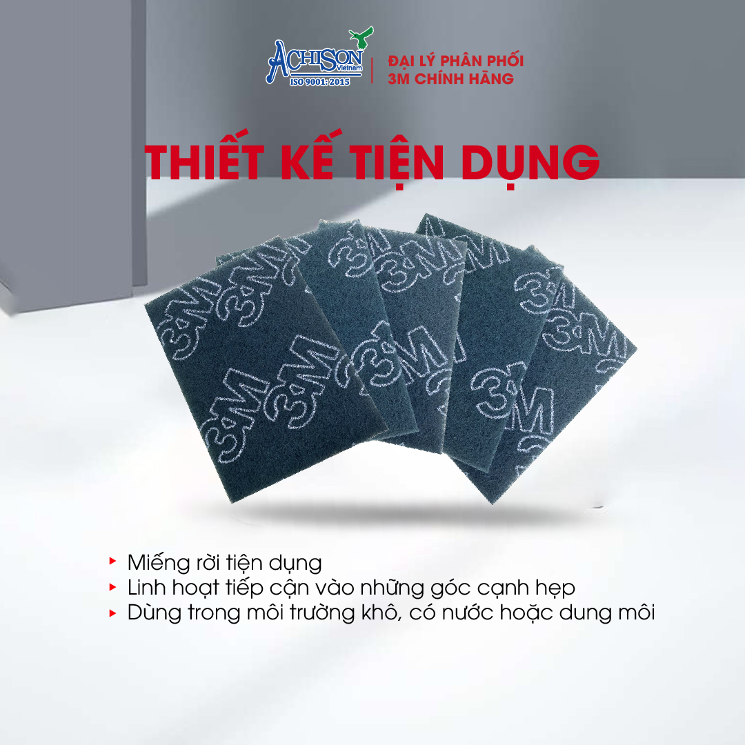 Bùi nhùi 3M Mighty Blue được sử dụng để làm sạch và mài tạo độ bám, sử dụng được trong môi trường ướt, khô và dung môi.