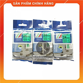 ✨Nhãn In Brother Tz2-751 [Combo 3 hộp] Đen nền xanh lá 24mm x 8m - Hàng nhập khẩu