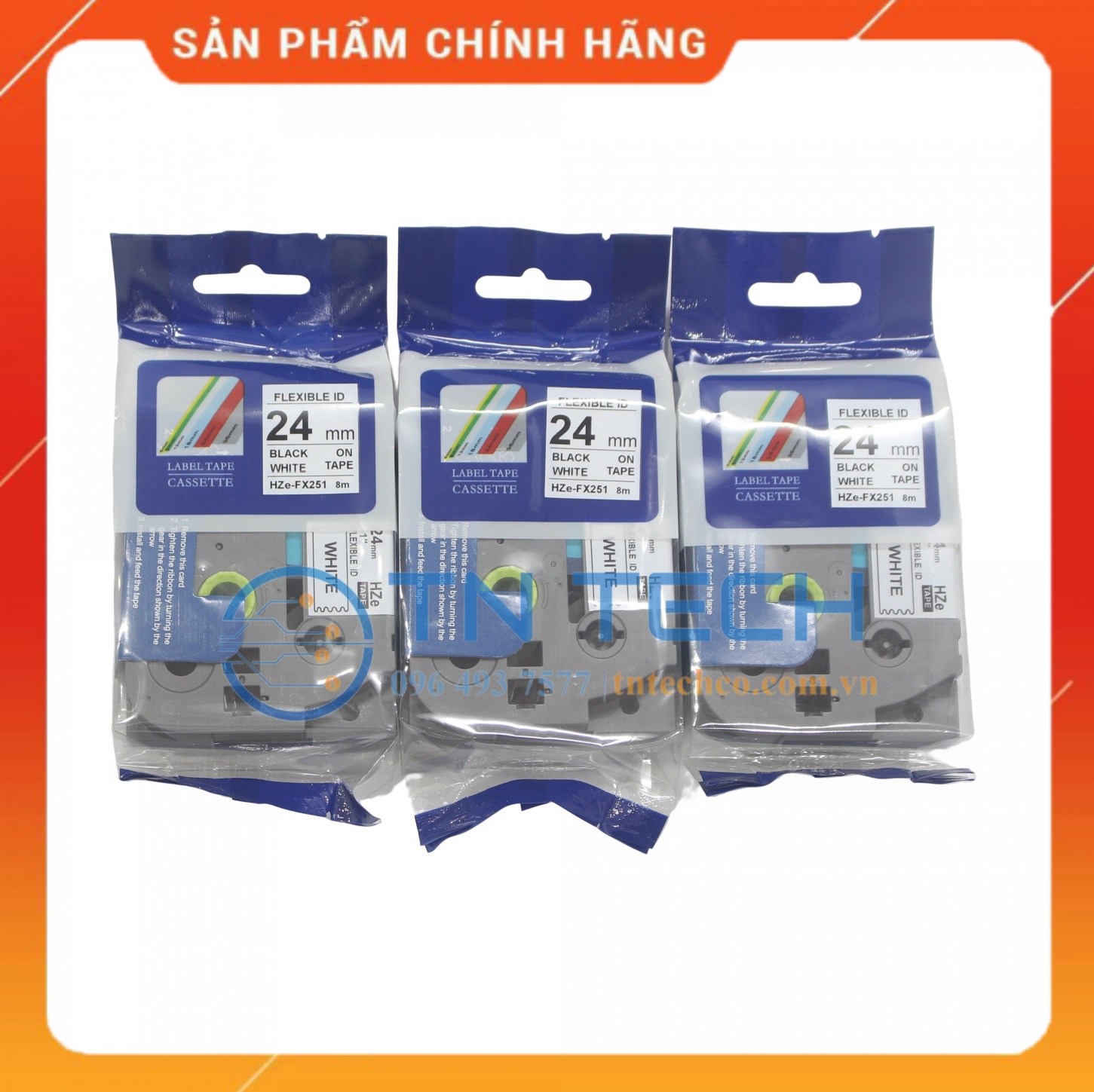Nhãn in HZE-S251 Brother Nhãn in đa lớp sử dụng cho máy in nhãn Brother, tất cả trong 1, mực nằm bên trong, chống chịu dung môi, hóa chất, nước, dầu mỡ, nhiệt độ Mã