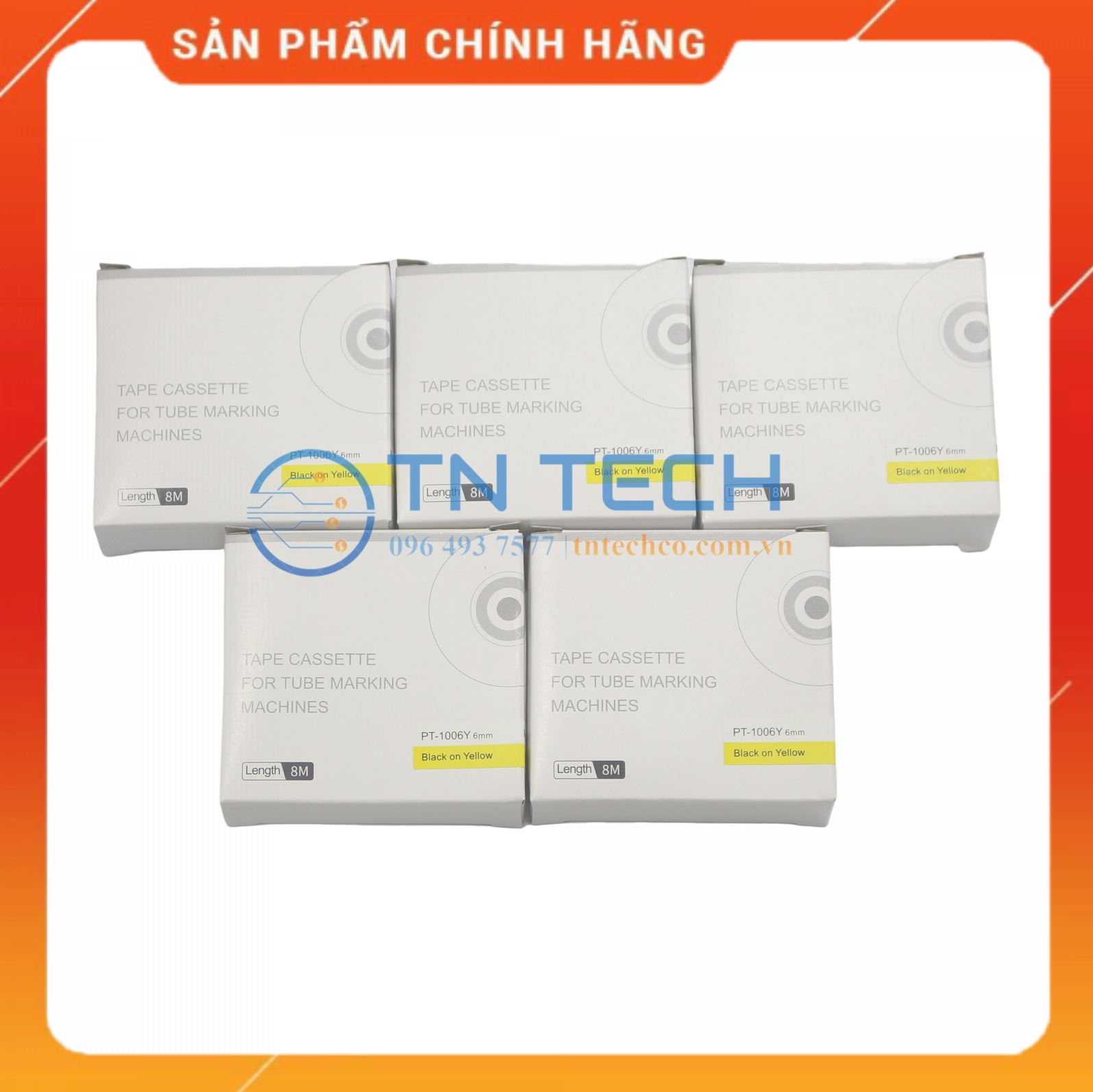 ✨Nhãn in PUTY PT-1006Y - Chữ đen nền vàng 6MM x 8M - Dùng cho máy in ống PUTY PT-1010 [Hàng nhập khẩu]