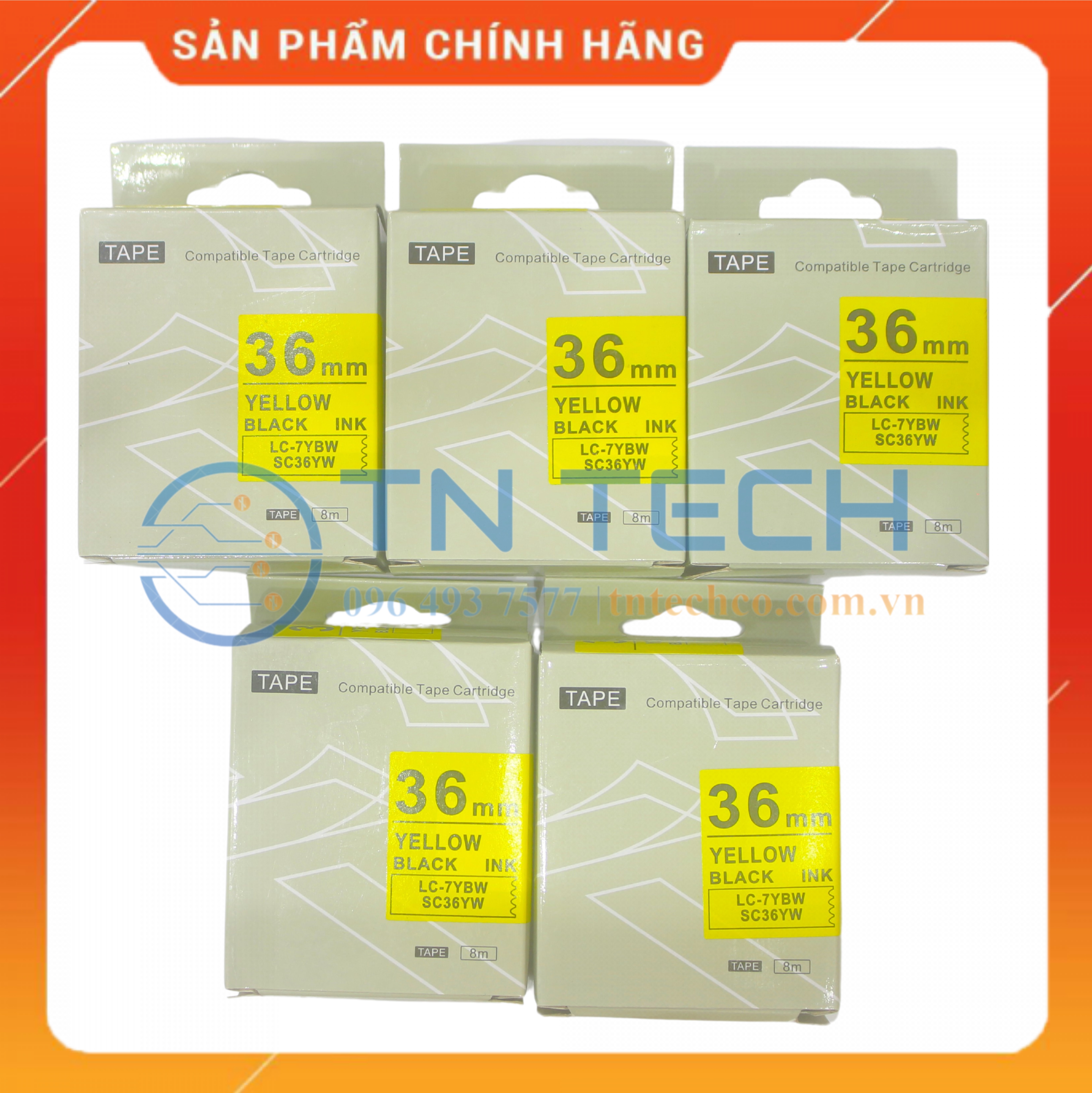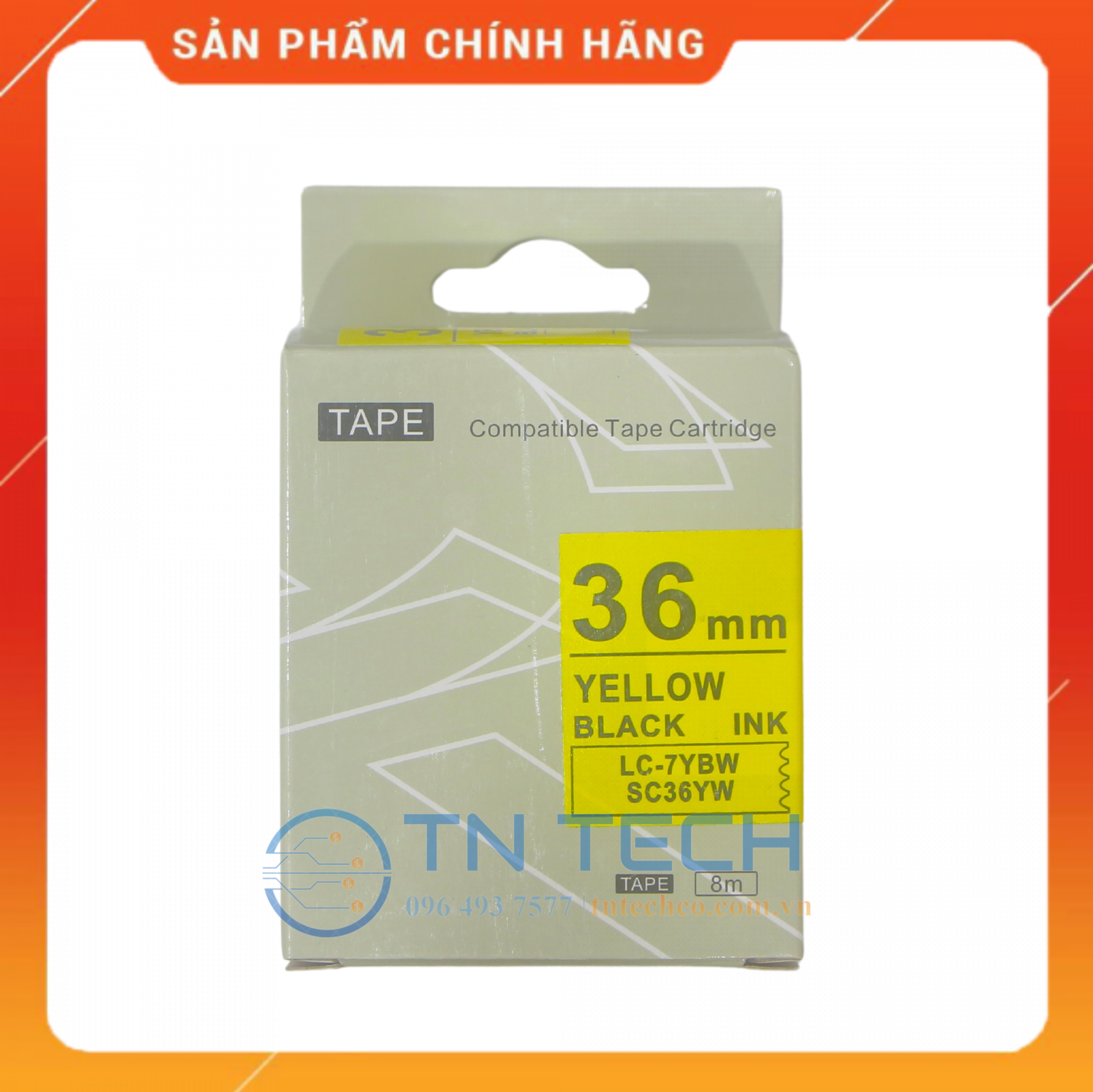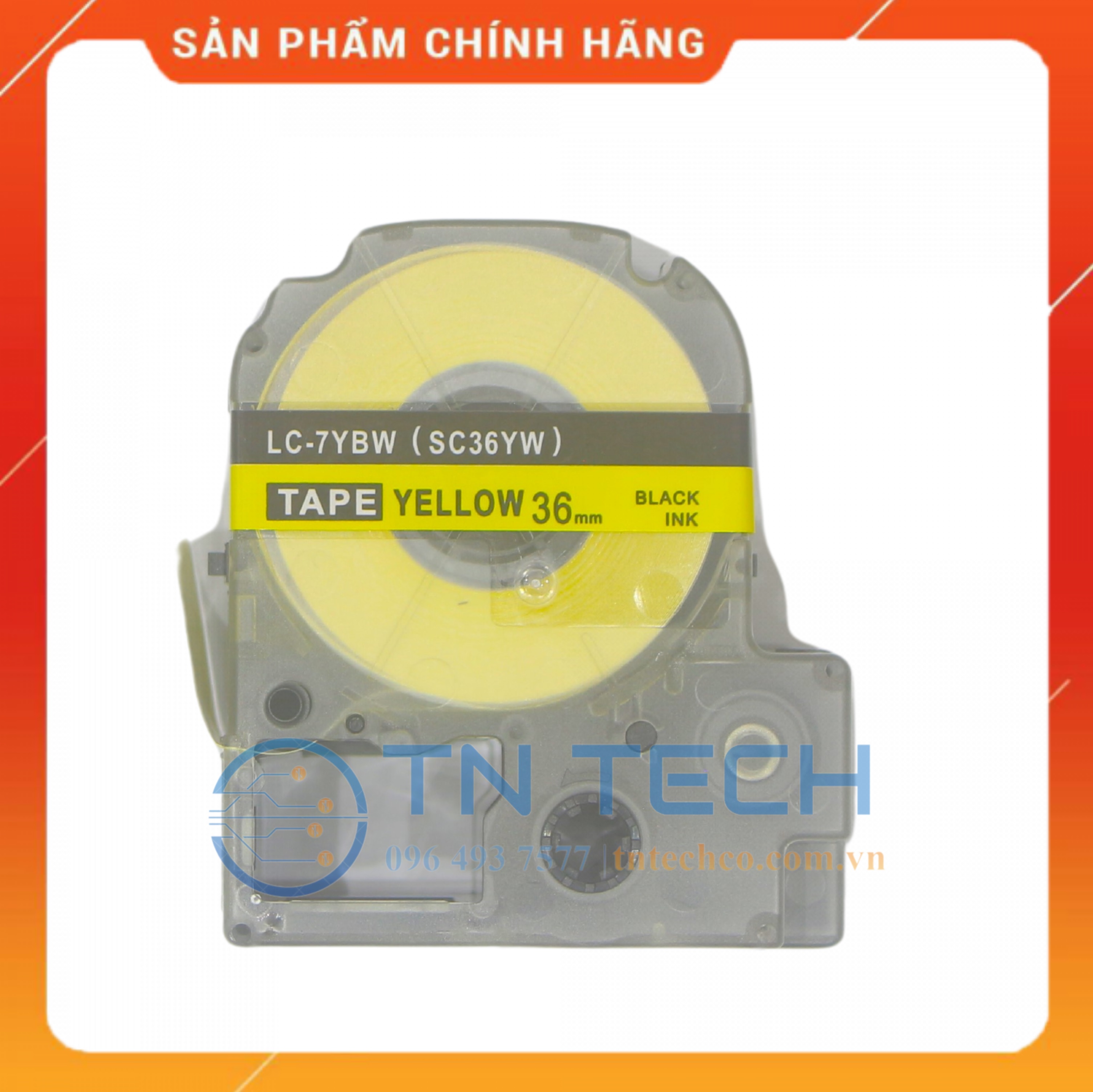 ✨NHÃN IN TEPRA-EPSON LC-7YBW (SC36YW) – CHỮ ĐEN NỀN VÀNG 36MM X 8M [Hàng nhập khẩu]