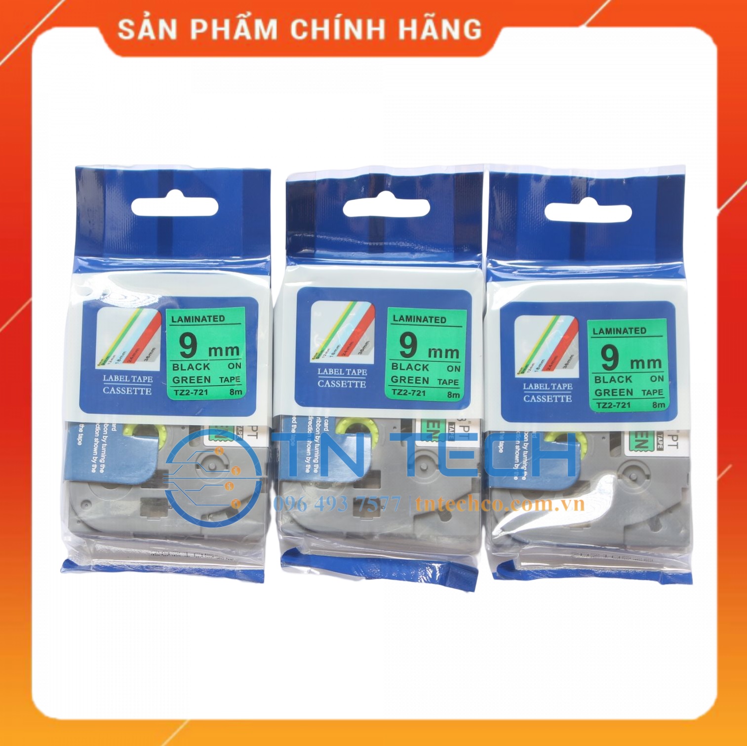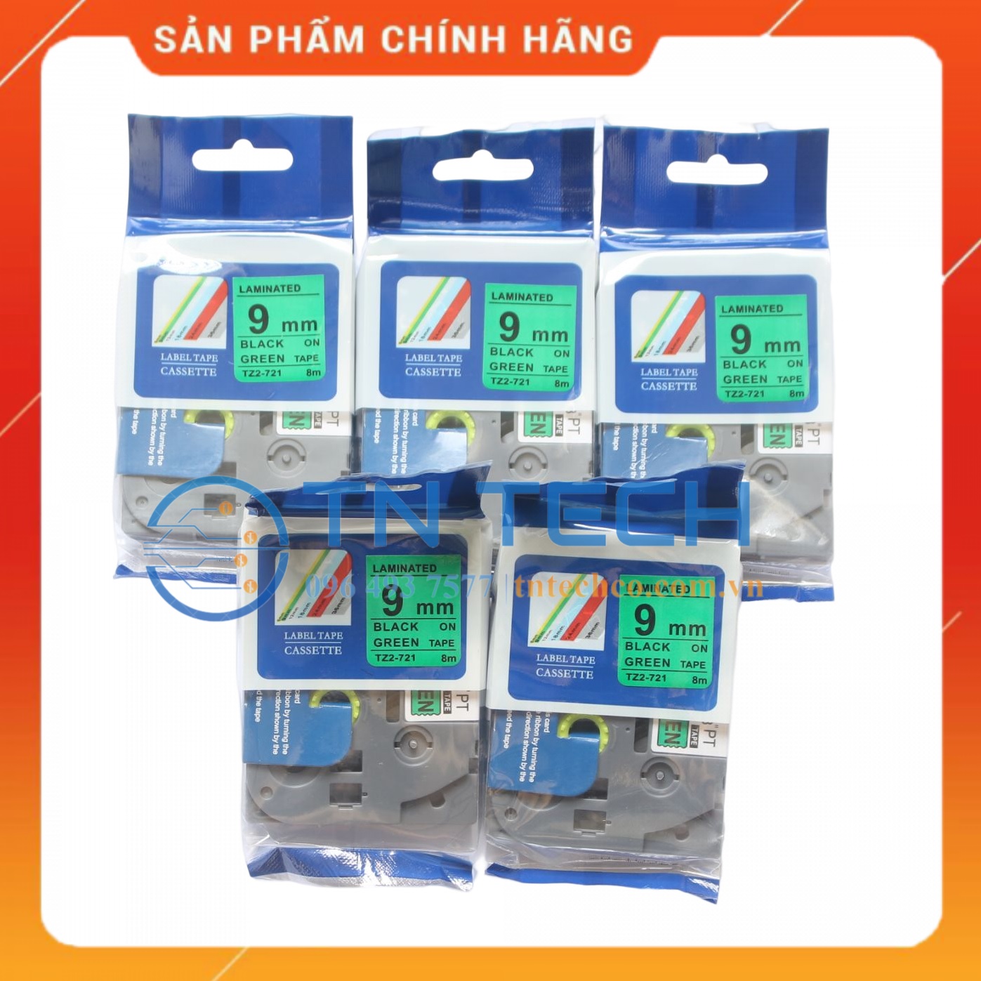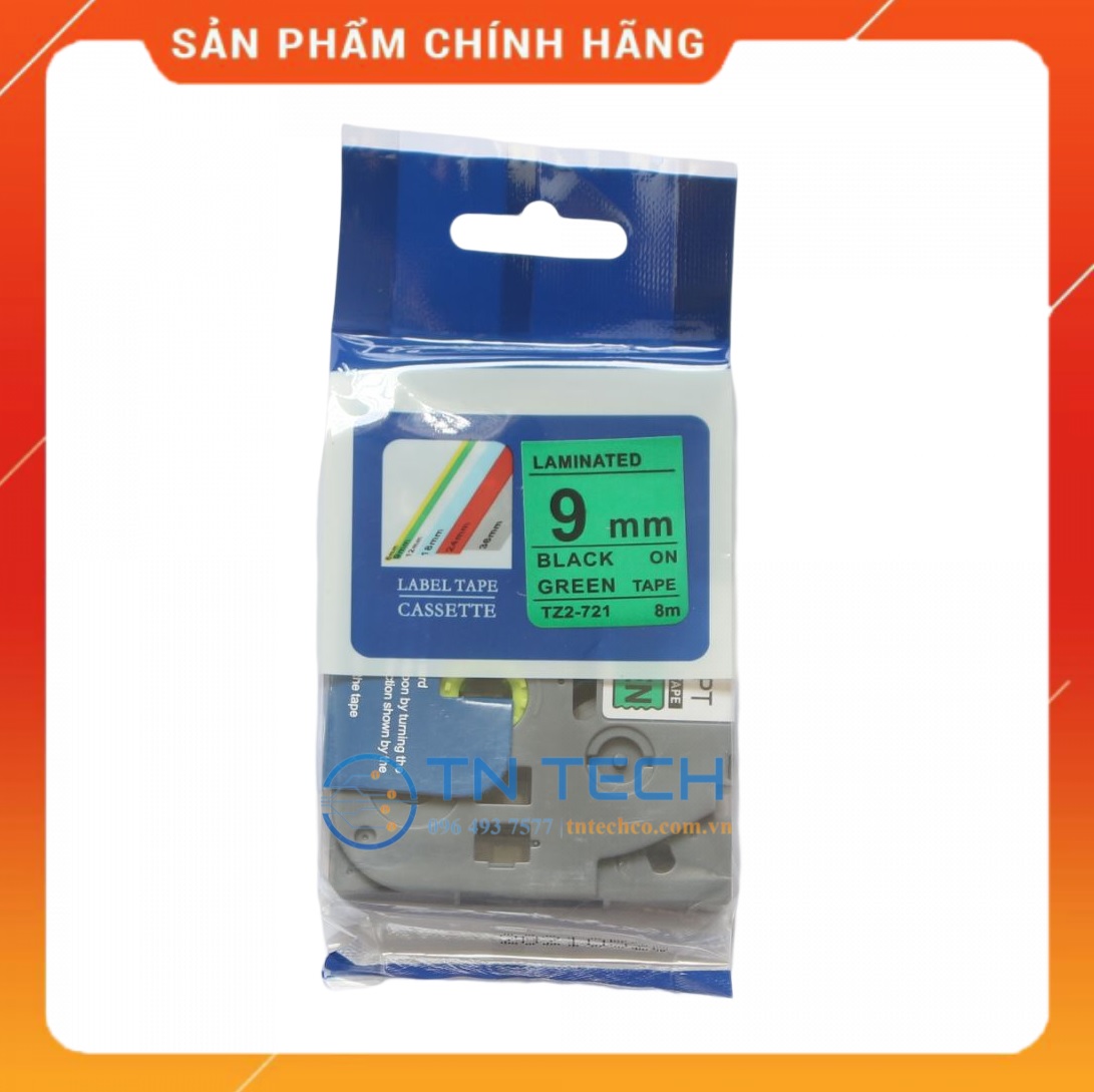 Nhãn in TZ2-521 Brother Nhãn in đa lớp sử dụng cho máy in nhãn Brother, tất cả trong 1, mực nằm bên trong, chống chịu dung môi, hóa chất, nước, dầu mỡ, nhiệt độ Mã