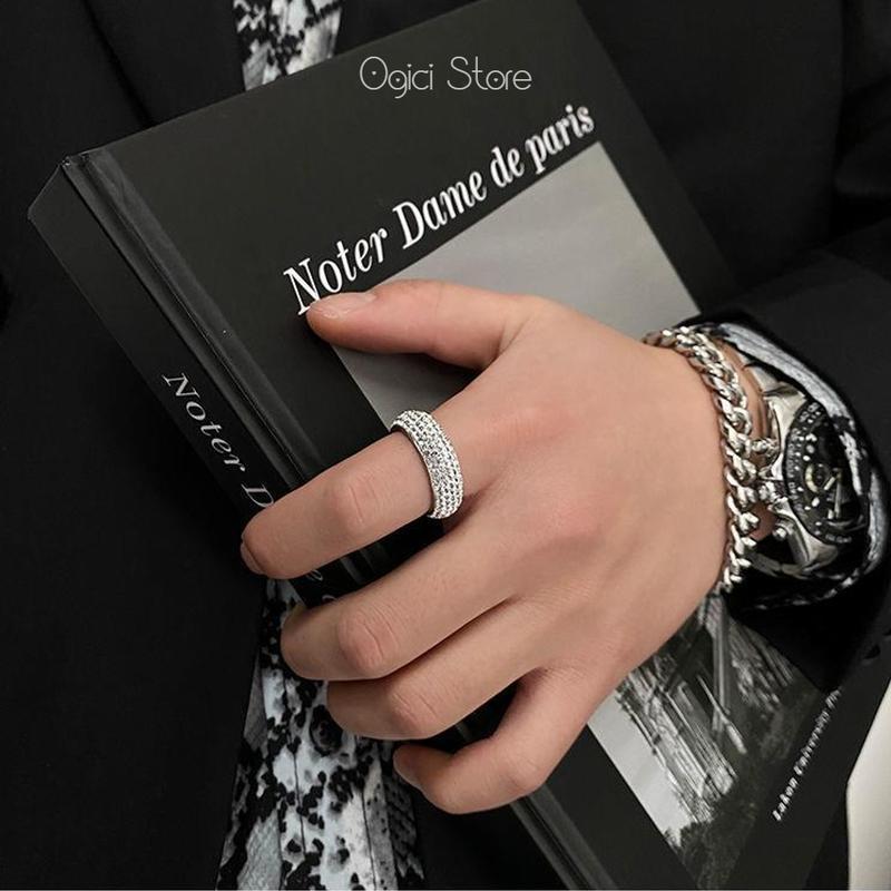 Mua tại TiktokNhẫn nam nữ thép không gỉ thời trang, Nhẫn nam họa tiết đính đá lấp lánh phong cách thanh lịch sang trọng, Unisex