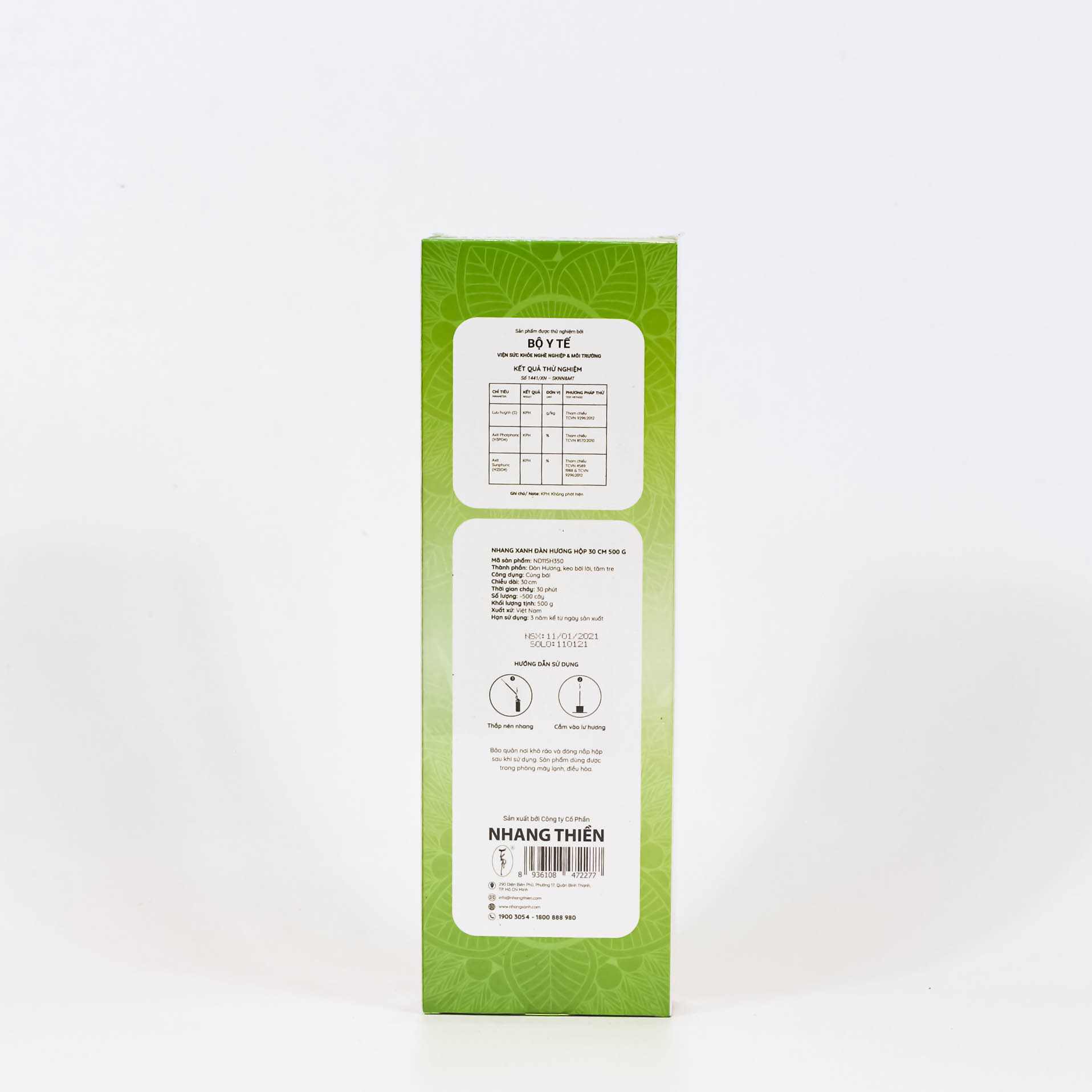 - An toàn cho sức khoẻ Sản phẩm được kiểm định bởi Sở Khoa Học & Công Nghệ TP.Hồ Chí Minh. Đạt chuẩn QCVN 19:2009/ BTMNMT và TCVN 6994:2001. An toàn cho mắt & phổi. 3.Thương hiệu uy tín Sản phẩm Nhang Sạch đầu tiên được VTV1 và Nông Nghiệp Sạch công nhận. Là sản phẩm Nhang duy nhất có mặt trong hệ thống siêu thị: LotteMart, Aeon, Emart.