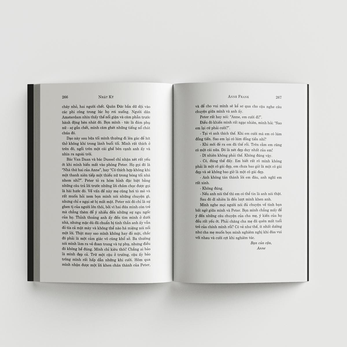Trong nhật ký của mình, Anne Frank ghi lại một cách sống động những trải nghiệm trong thời gian đó. Suy tư, cảm động, rồi hài hước, những miêu tả của cô là một lời ca ngợi về lòng dũng cảm cũng như sự yếu đuối của con người, một bức chân dung tự họa tuyệt vời về một cô gái trẻ thông minh, nhạy cảm, một tài năng hứa hẹn đã bị cắt ngang một cách bi thảm.