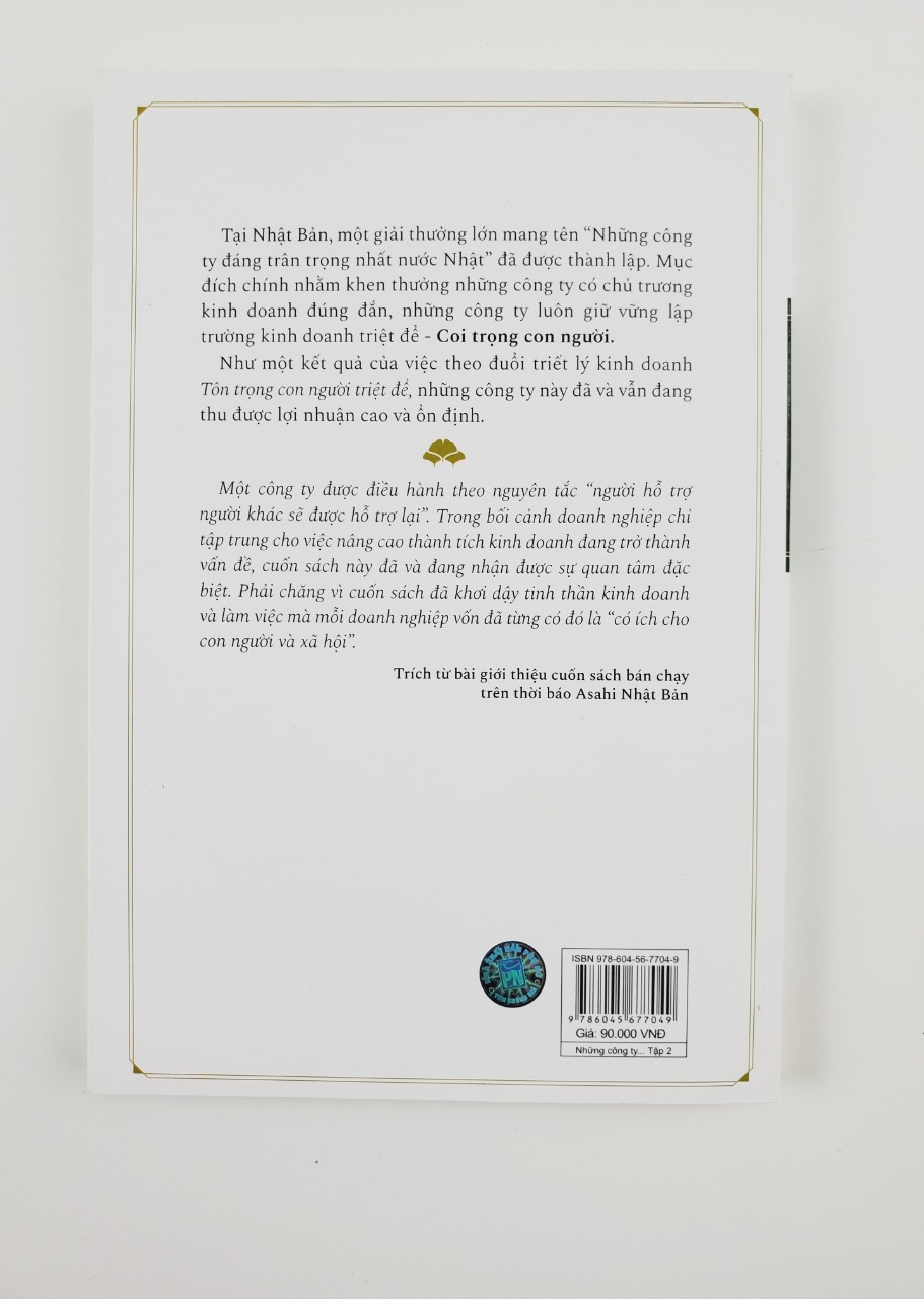 Một công ty được điều hành theo nguyên tắc "người hỗ trợ người khác sẽ được hỗ trợ lại". Trong bối cạnh doanh nghiệp chỉ tập trung cho việc nâng cao thành tích kinh doanh đang trở thành vấn đề, cuốn sách này đã và đang nhận được sự quan tâm đặc biệt. Phải chẳng vì cuốn sách đã khơi dậy tinh thần kinh doanh và làm việc mà mỗi doanh nghiệp vốn đã từng có đó là "có ích cho con người và xã hội"