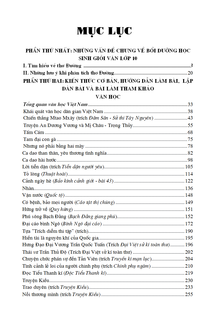 MỤC LỤC Dẫn nhập PHẦN 1: DẠNG BÀI VÀ KĨ NĂNG I. Dạng bài nghị luận văn học 1. Nghị luận văn học trong thi vào 10, THPT QG, ĐGNL 1.1. Viết đoạn văn nghị