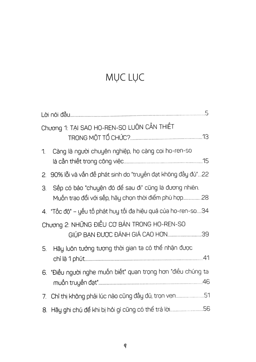 Cuốn sách này sẽ đặt trọng điểm vào kỹ năng cơ bản, thậm chí có khi bạn sẽ nghĩ là không cần thiết, đó chính là kỹ năng Horenso. Đối tượng phù hợp nhất với cuốn sách này là nhân viên trẻ đang phải đau đầu với những thắc mắc như không được đánh giá cao dù đang rất nỗ lực làm việc hết mình, hay công việc không tiến triển như mong muốn.