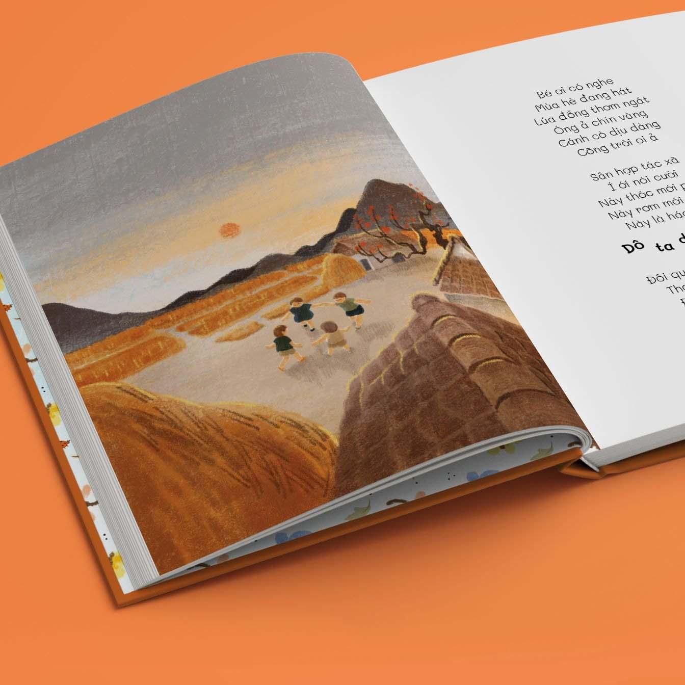 Tranh minh họa của Thạch Thảo cũng đem tới những bức tranh “ấm êm” đúng nghĩa. Sử dụng một bảng màu nóng nhưng hài hòa, ấm áp với hình ảnh gần gũi, quen thuộc với các bạn nhỏ. Cách tô màu gợi ra chất liệu màu chì mờ, đem lại cảm giác như đang xem lại từng kí ức thuở bé.