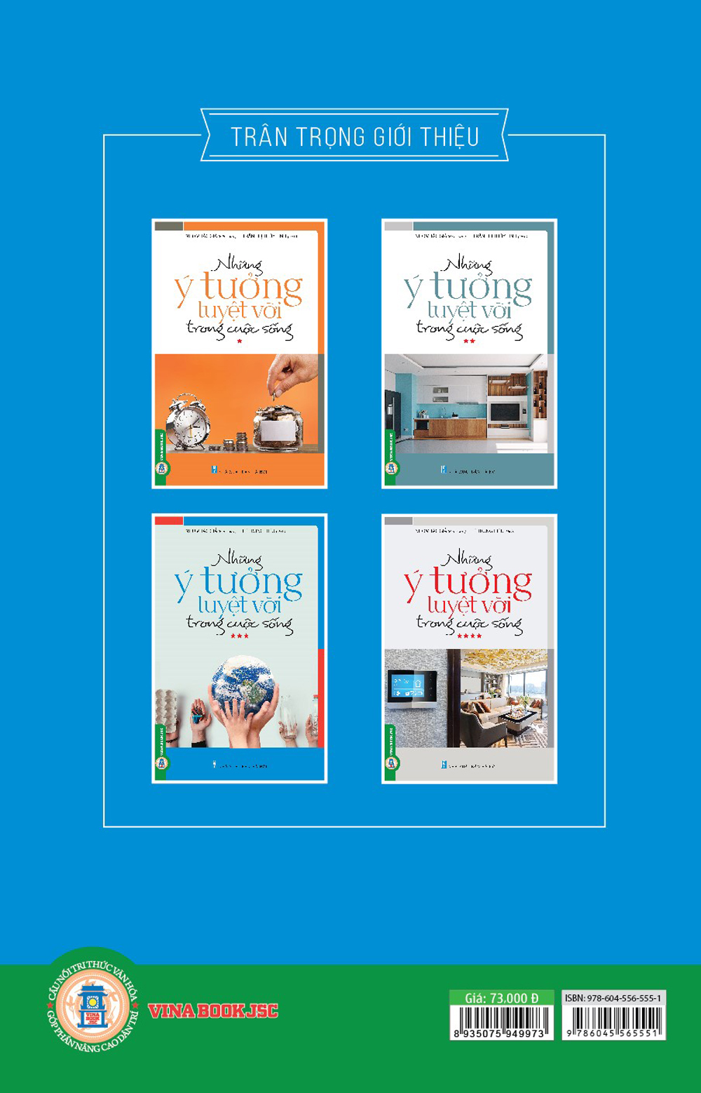 Bộ sách “Những ý tưởng tuyệt vời trong cuộc sống” gồm 4 tập. Mỗi tập là những suy nghĩ sáng tạo đa dạng khác nhau, và đặc biệt ứng dụng một cách dễ dàng trong thực tế cuộc sống. Tất cả những ý tưởng đó đều theo phương châm tiết kiệm, đơn giản, dễ làm, dễ nhớ, bổ ích hữu dụng nhưng vẫn luôn đa dạng, phong phú, hấp dẫn, giúp tiết kiệm thời gian và công sức, tận dụng phế thải bảo vệ môi trường, biến việc dọn dẹp-vệ sinh không còn là ác mộng…