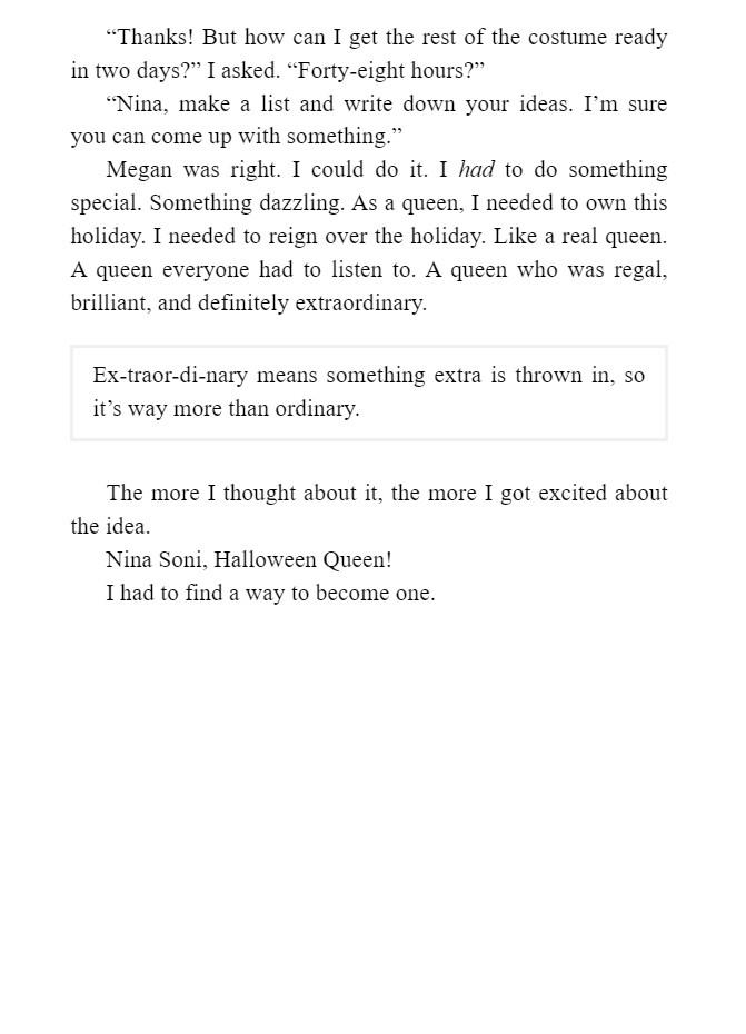 Halloween brings out Nina Soni's competitive spirit. Her friend Jay has a great costume planned, so—of course—Nina has to come up with an even better idea. A bunch of old boxes in the basement inspires her to create an impressively scary haunted house, for which she can charge admission. So what could possibly go wrong for the Halloween Queen?