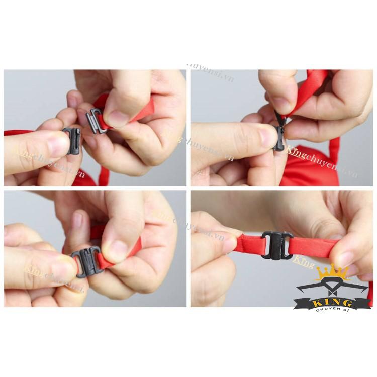 Thông tin sản phẩm Chất liệu gồm 1. Vải Silk Lụa 100% 2. Miếng lót bên trong là vải không dệt, from cứng 3. Dây đeo có móc cài nhựa Kích thước nơ đeo cổ