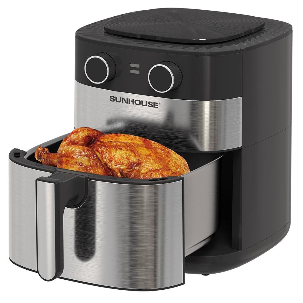 - Dung tích lớn, chiên gà vịt nguyên con Nồi chiên không dầu SUNHOUSE SHD4026 sở hữu dung tích lớn 6L cùng công suất 1750W giúp chiên nướng lượng lớn thức ăn một cách nhanh chóng. Dung tích lớn thích hợp cho những thức ăn lớn, gà vịt nguyên con mà không cần chặt nhỏ, tiết kiệm thời gian công sức và làm tăng tính thẩm mỹ cho món ăn.
