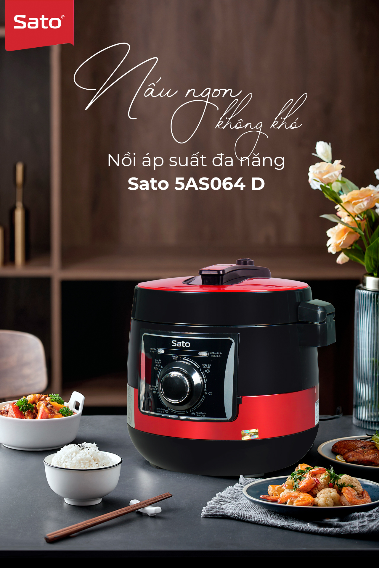 ✨Nồi áp suất đa năng SATO 5AS064.D 5.0L - Nồi áp suất đa chức năng : nấu cơm, nấu cháo, hầm gân, ninh, súp, hấp, giữ ấm ... Dung tích : 5.0 lít phù hợp gia đình 4 - 6 người - Miễn phí vận chuyển toàn quốc - Hàng chính hãng