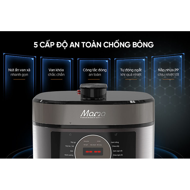 Nồi áp suất điện tử 5L SUNHOUSE MAMA SHD1586B |Tiện lợi và tuyệt đối an toàn