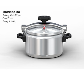 - Dung tích 6L, tiện nấu cho cả gia đình. Nồi áp suất nhôm SUNHOUSE SHG9900-06 có dung tích lớn 6L, đáp ứng nhu cầu nấu ăn cho cả gia đình có đông thành viên. Bạn sẽ dễ dàng chế biến các món ăn như: ninh hầm gà nguyên con, ninh xương, nấu cháo, canh, súp, nhanh chóng, tiện lợi.