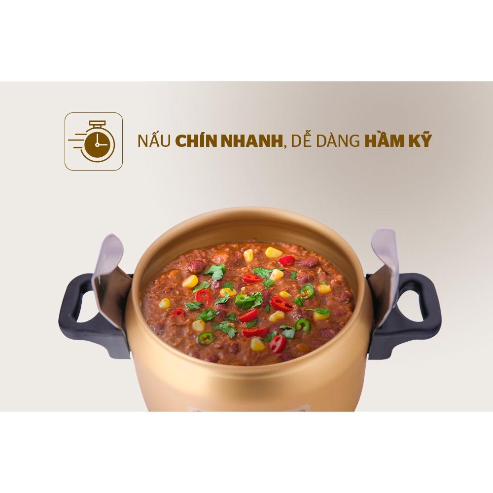 Phù hợp với bếp gas, giúp đun nấu nhanh gọn, tiết kiệm gas và thời gian. - Tiết kiệm tối đa 70% thời gian nấu. - Van xả và cửa sổ xả hơi an toàn