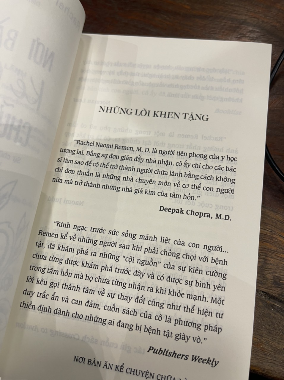 “Kinh ngạc trước sức sống mãnh liệt của con người… Remen kể về những người sau khi phải chống chọi với bệnh tật, đã khám phá ra những “cội nguồn” của sự kiên cường chưa từng được khám phá trước đây và có được sự bình yên trong tâm hồn mà họ chưa từng nhận ra khi khỏe mạnh. Một lời kêu gọi thành tâm về sự thay đổi cũng như thể hiện tư duy trắc ẩn và can đảm, cuốn sách của cô là phương pháp thiên định dành cho những ai đang bị bệnh tật giày vò.” Publishers Weekly