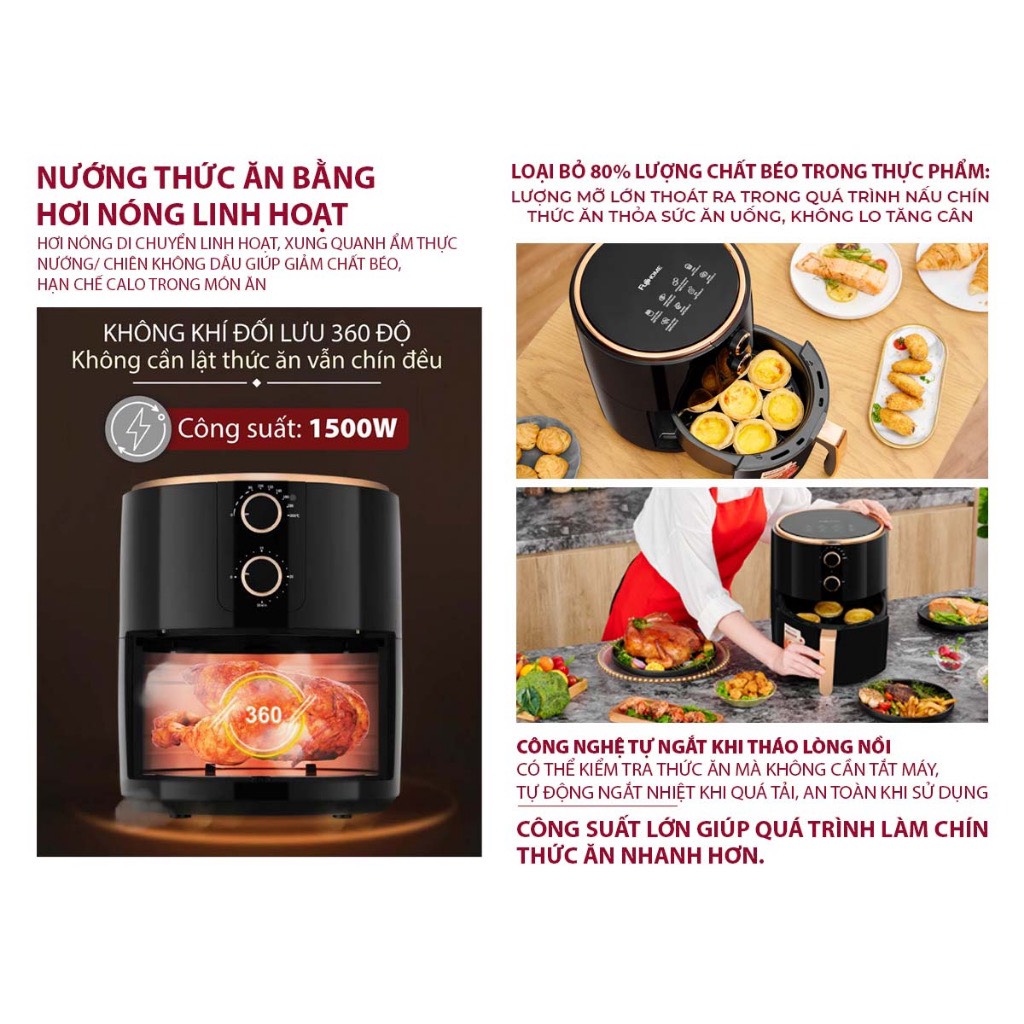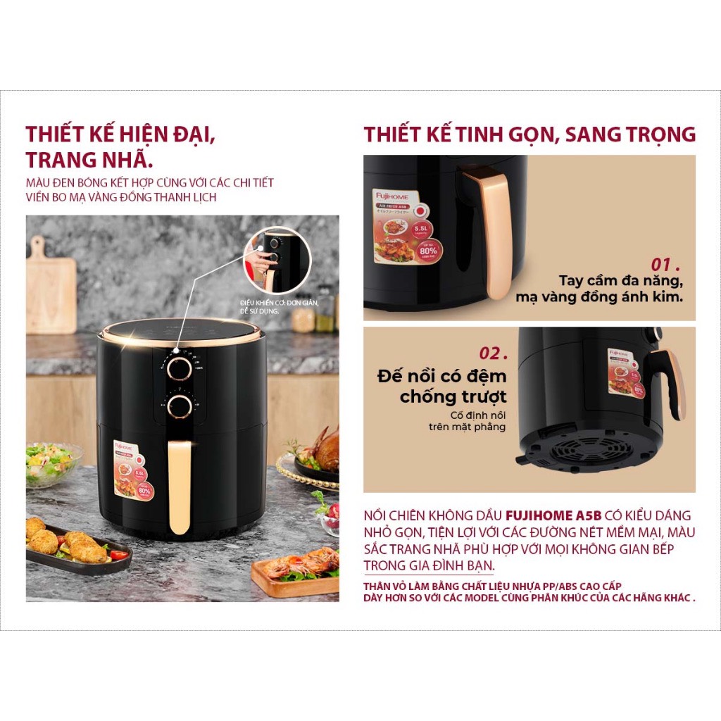 ✨Nồi chiên không dầu 5.5L FUJIHOME A5B công suất mạnh 1500W, nồi chiên giá rẻ, đa năng - Hàng chính hãng