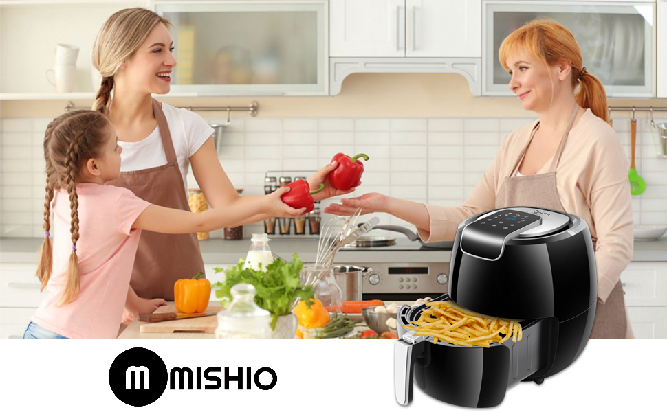 Nồi chiên không dầu điện tử Mishio MK-165 thiết kế cảm ứng sang trọng, độc đáo Nồi chiên không dầu điện tử Mishio MK-165 có dung tích 5.5 lít thích hợp sử dụng cho gia đình