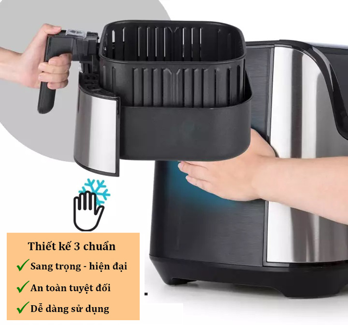 - Với công suất 1700w nhiệt được phân bố tối ưu với luồn khí nóng đối lưu nên thức ăn ko cần lật. Bề mặt vỏ inox sang trọng, tay cầm được chống nóng, thành